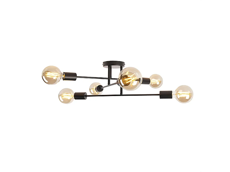 Plafonniers Infinix industriel en acier - 6 sources lumineuses 3000K - L.80 x H.15,5 cm - noir