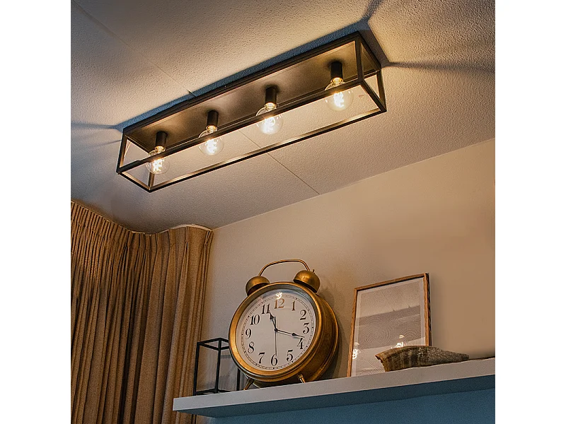Plafonnier industriel noir 40 cm 4 lumières - Cage