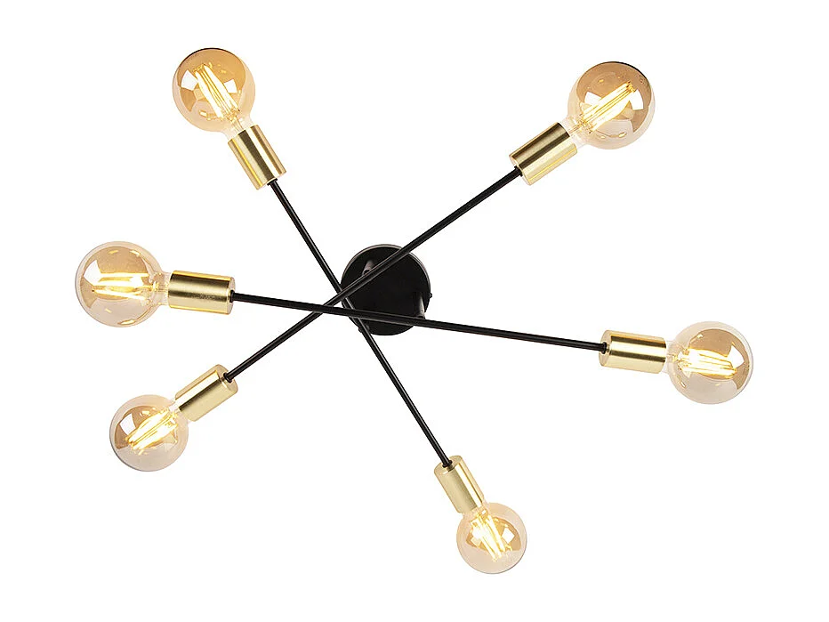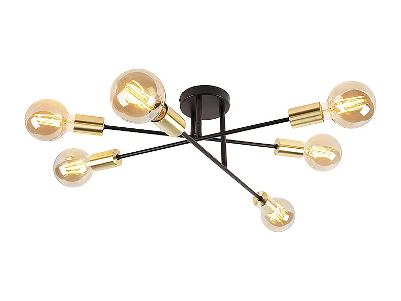 Plafonnier industriel noir avec or 6 lumières - Sydney