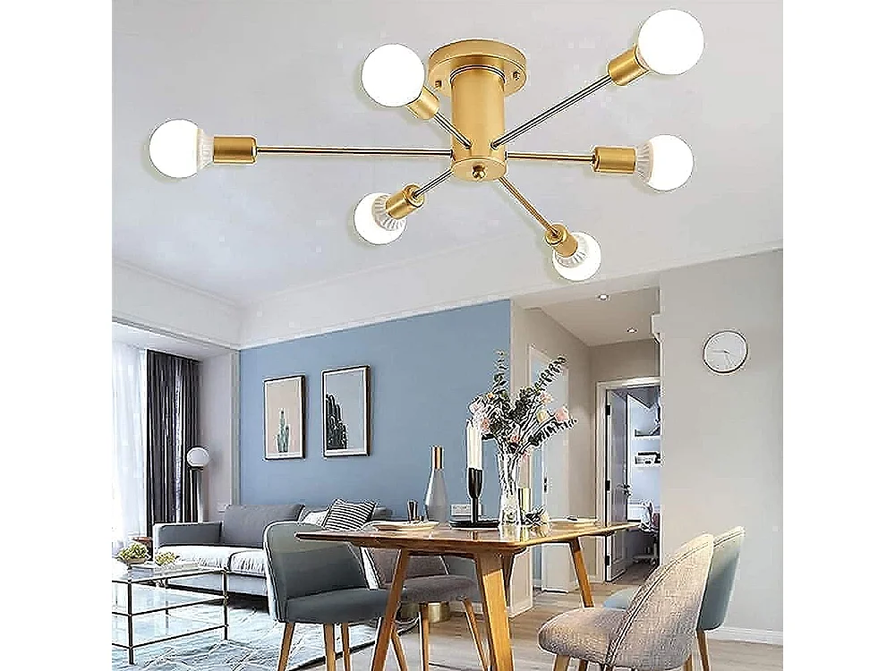 Plafonnier vintage E27 base 6 lampe, or, 70 * 70 * 18cm, sans ampoules