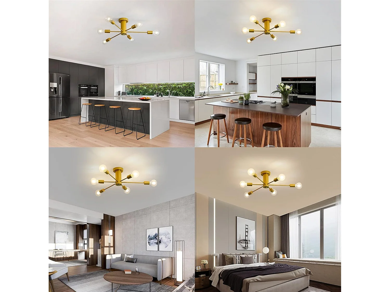 Plafonnier led moderne rétro lustre, or, 60*60*23cm, 6 lumières E27 base, sans ampoules