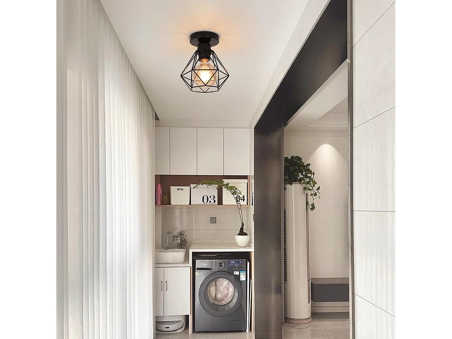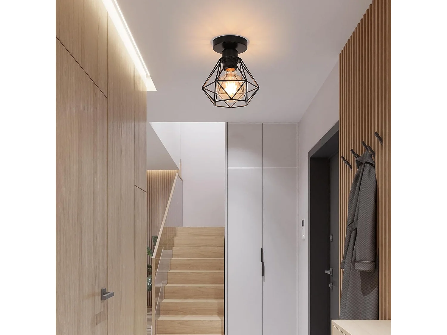 Plafonnier industriel vintage E27 en forme diamant, 16*18cm, noir, en métal, sans ampoule