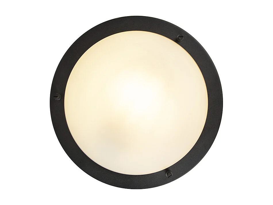 Plafonnier classique noir avec verre opale 23 cm IP44 - Nohmi