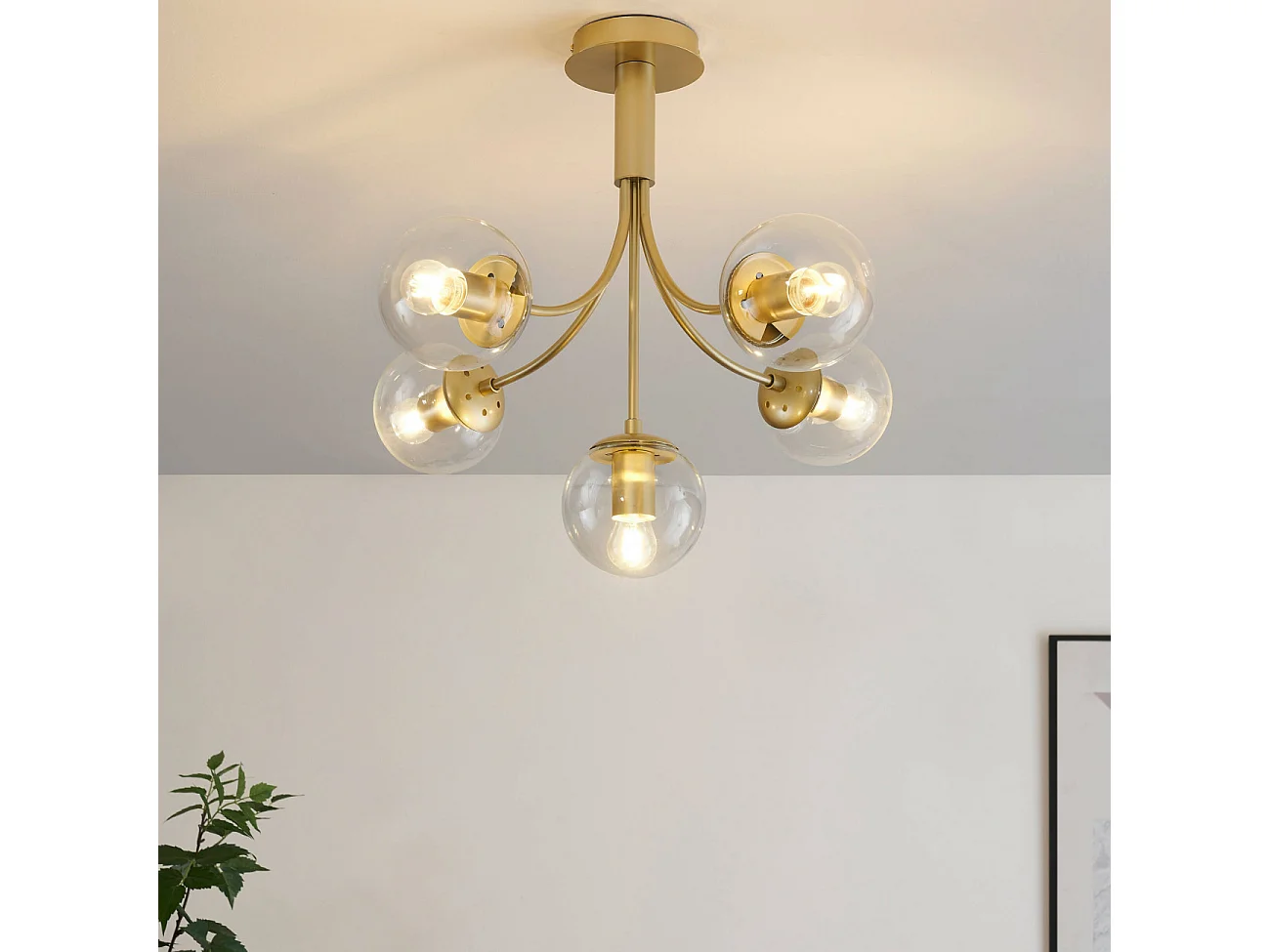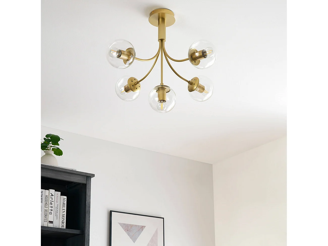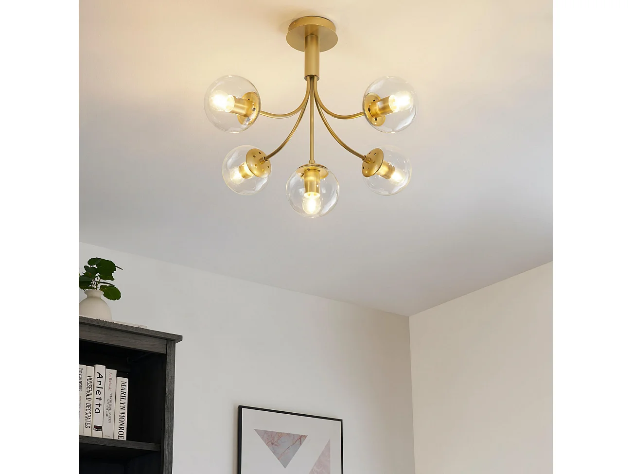 Plafonnier Art Déco Laiton avec Verre Transparent - Sphere