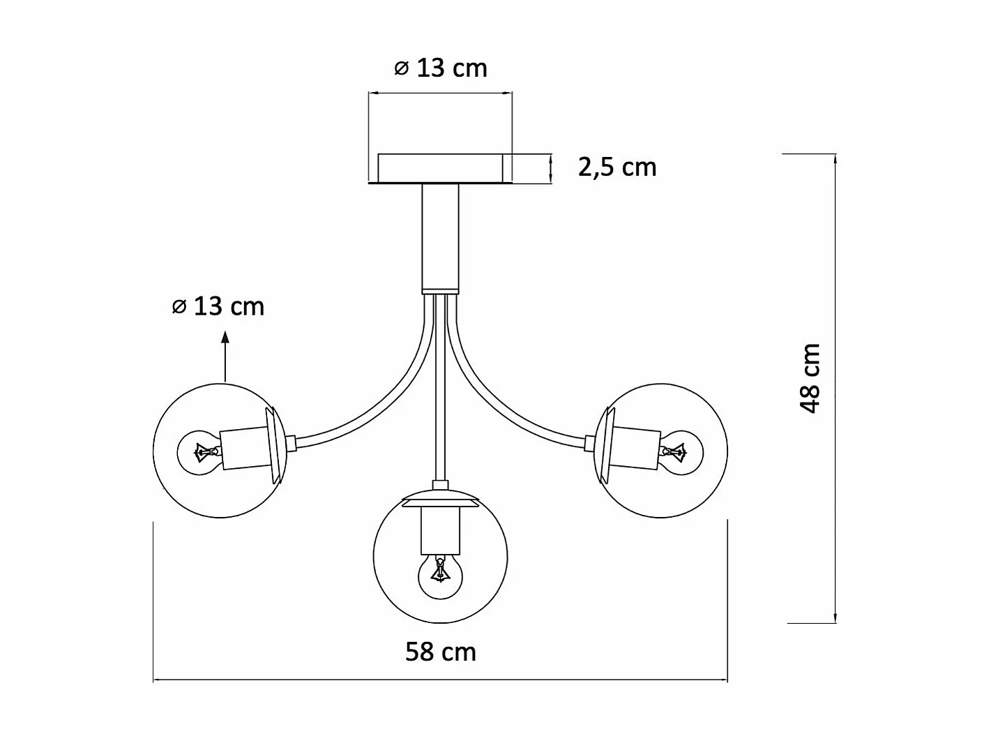 Plafonnier doré à 3 sphères en verre ambré - Ottavia