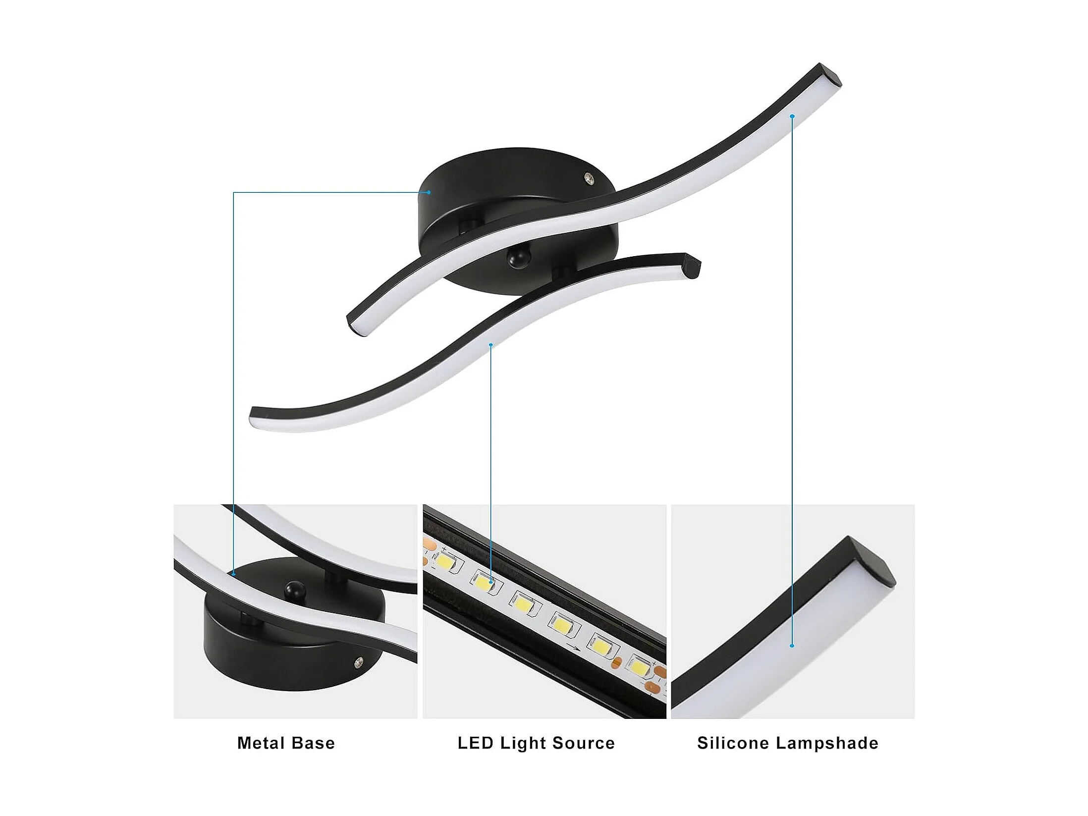 Plafonnier LED, 12W 1300LM Lampe de Plafond Moderne en Acrylique, 6500K Lumière Blanche Froide Lustre Intérieur Luminaire Plafonnier Noir pour Chambre à Coucher