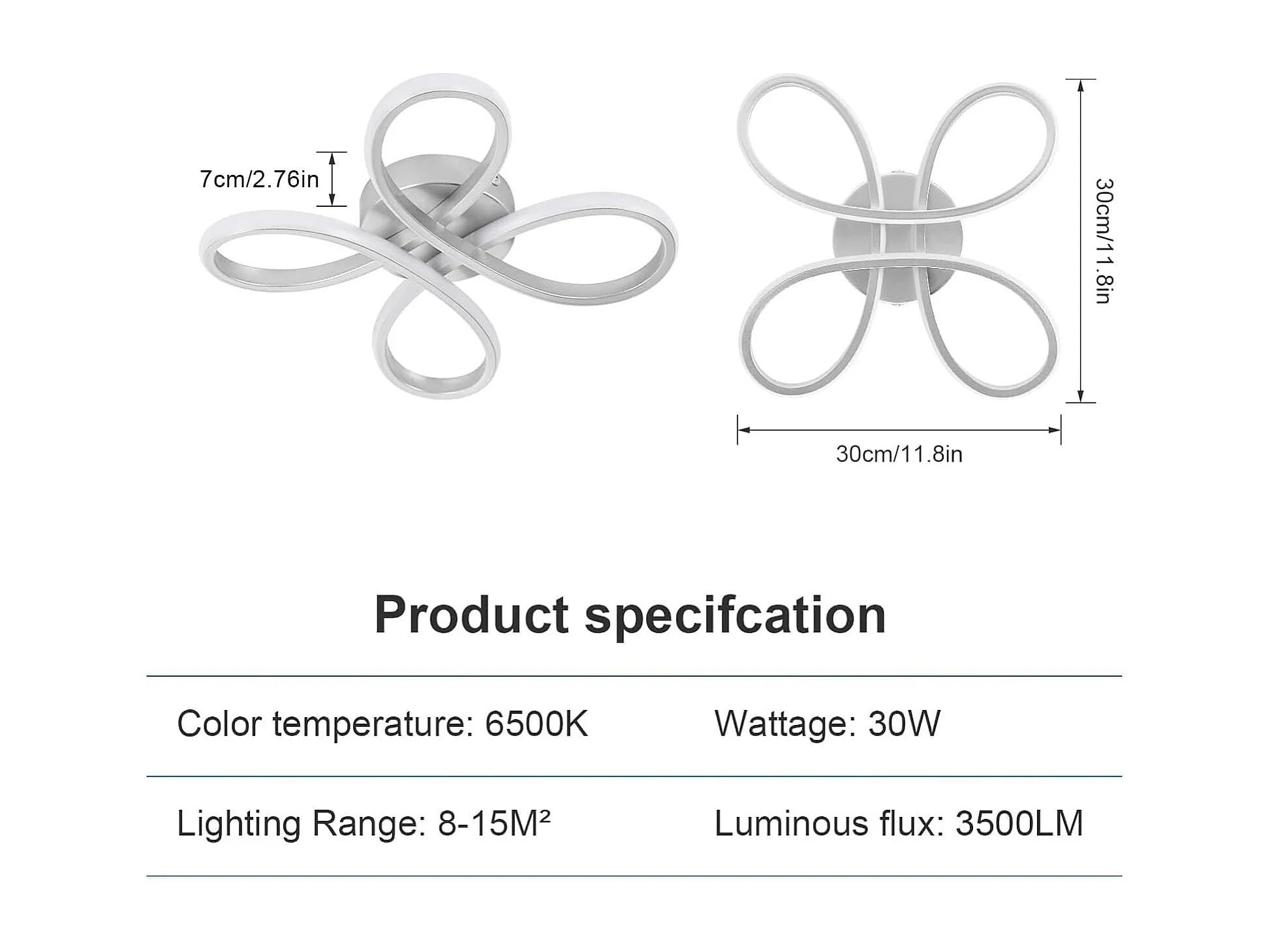 Plafonnier LED 30 W, design floral, éclairage de plafond LED, blanc froid 6 500 K, pour salon, chambre, cuisine, couloir et bureau
