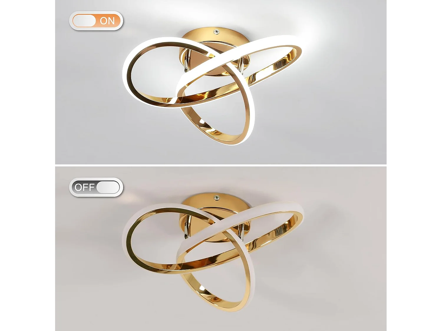 Plafonnier LED 30 W, lumière blanche froide 6 500 K, 3 375 lm, design moderne doré, motif floral, pour salon, chambre, cuisine et couloir.
