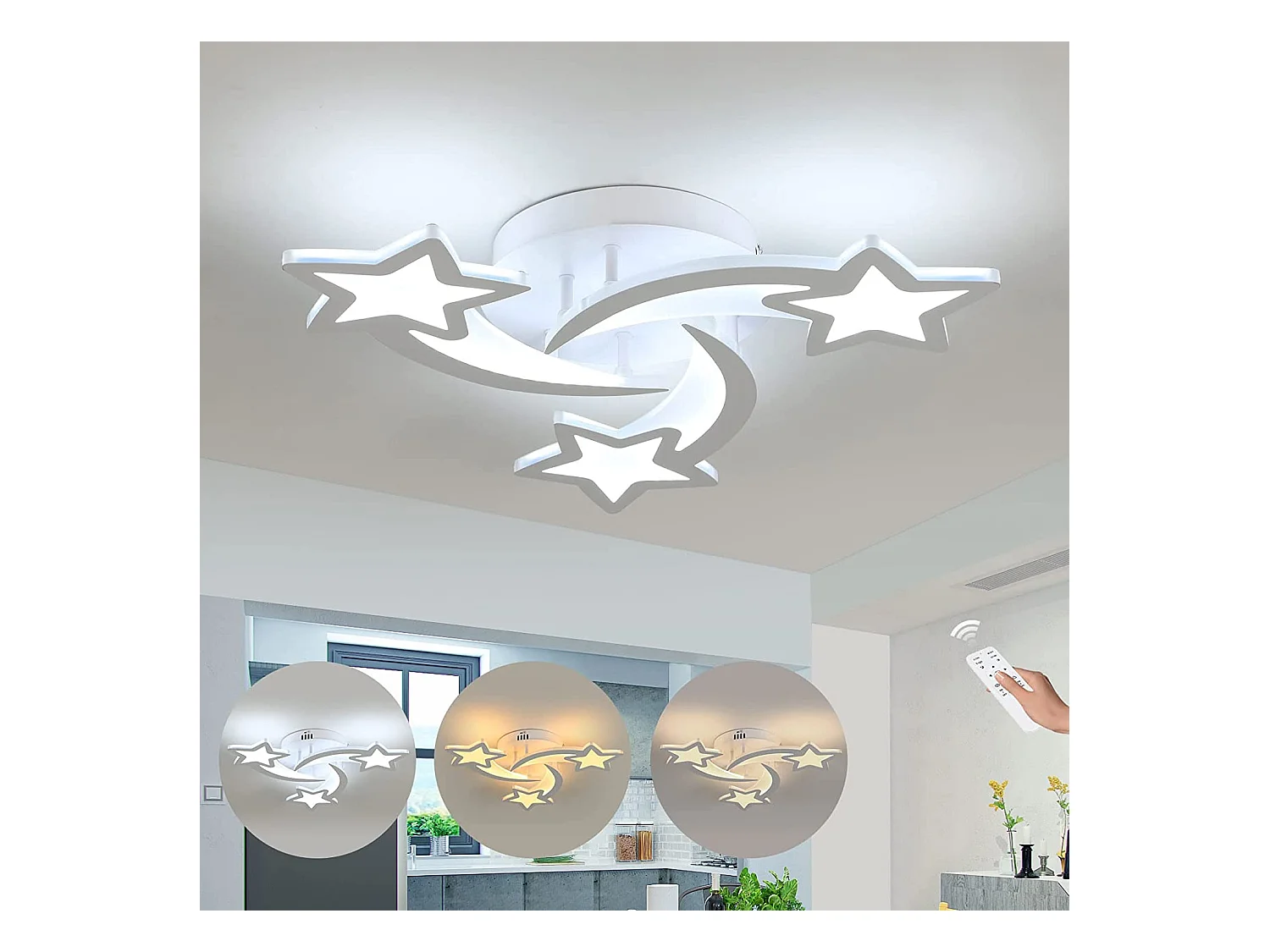 Plafonnier led 30w dimmable en forme star, 50*50*8cm, avec télécommande, en métal