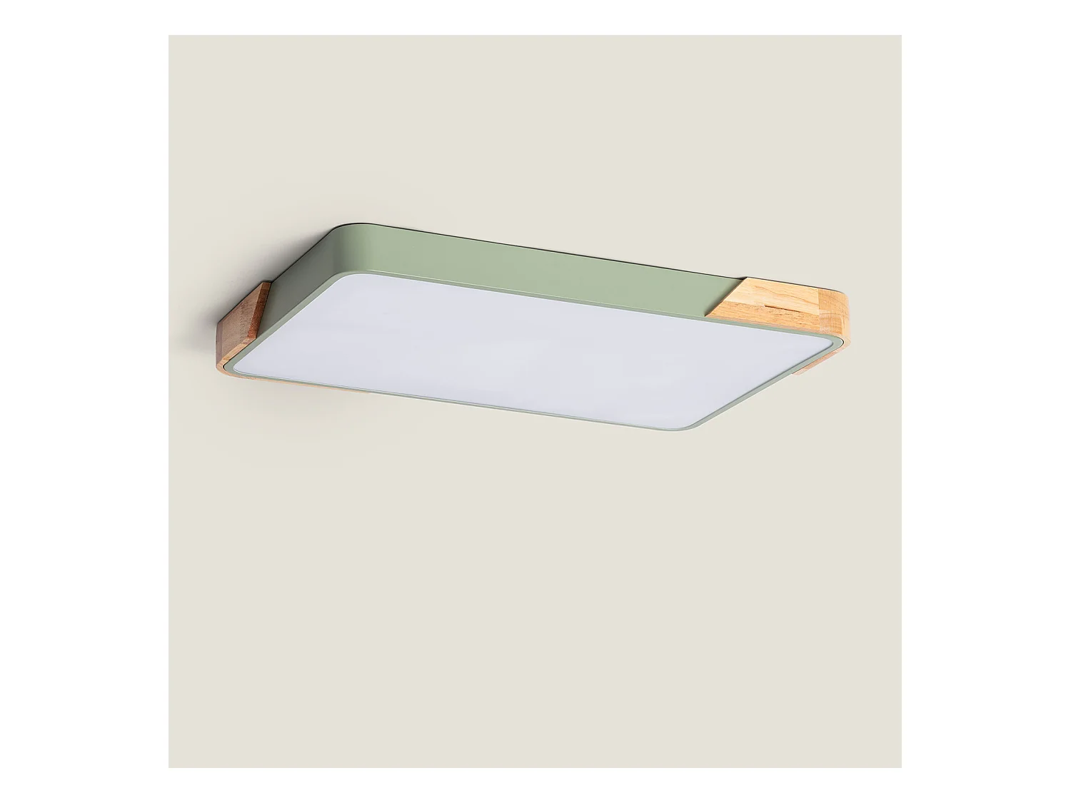 Plafonnier LED 30W Rectangulaire Bois et Métal 625x425 mm CCT Sélectionnable Semi-Dari Vert