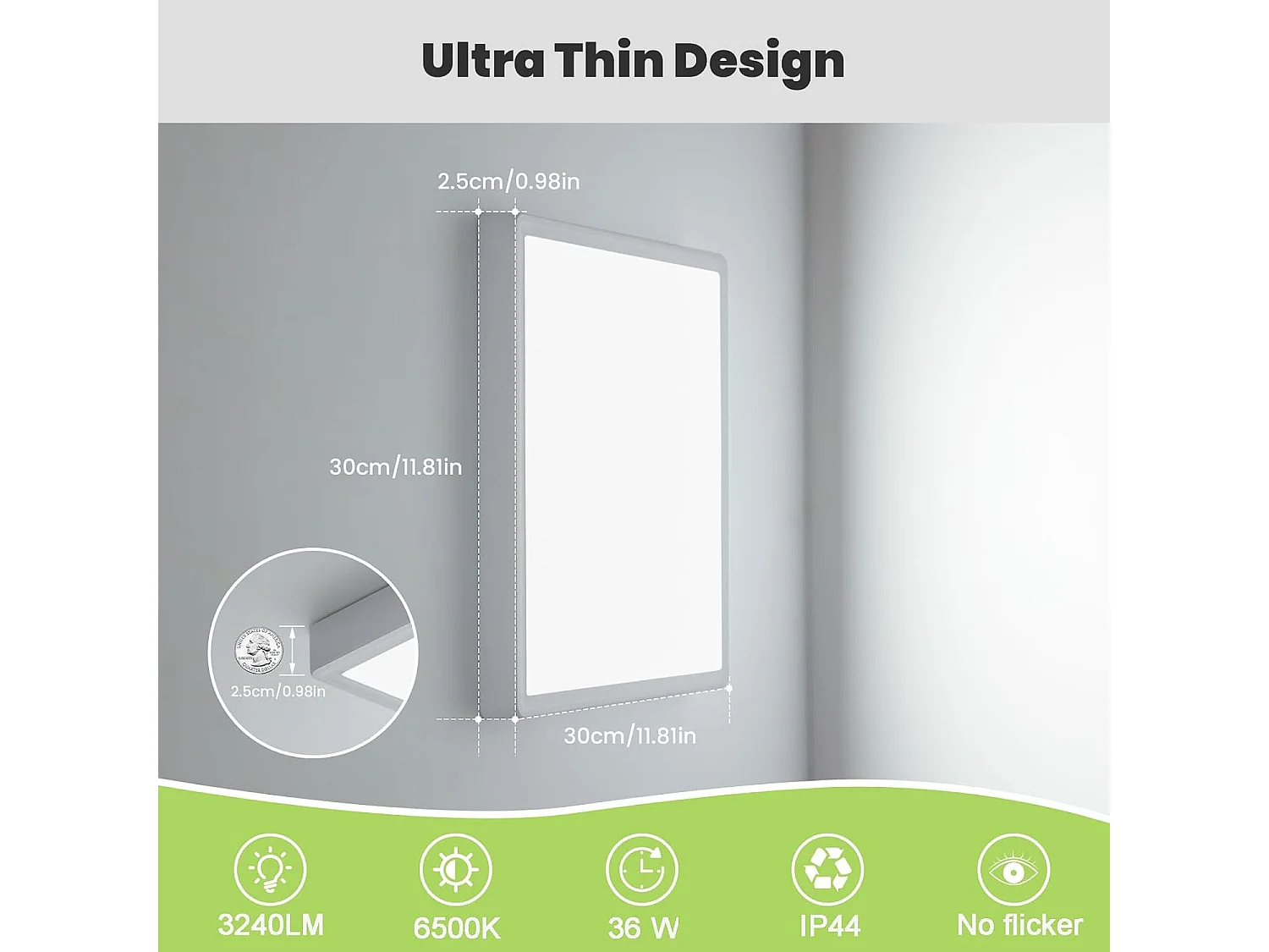 Plafonnier LED 36W, Lampe Plafond Carré Ultra-Mince 30CM IP44, Plafonnier Moderne 3240LM 6500K Blanche Froide pour Salle de Bain Salon Chambre Cuisine Balcon