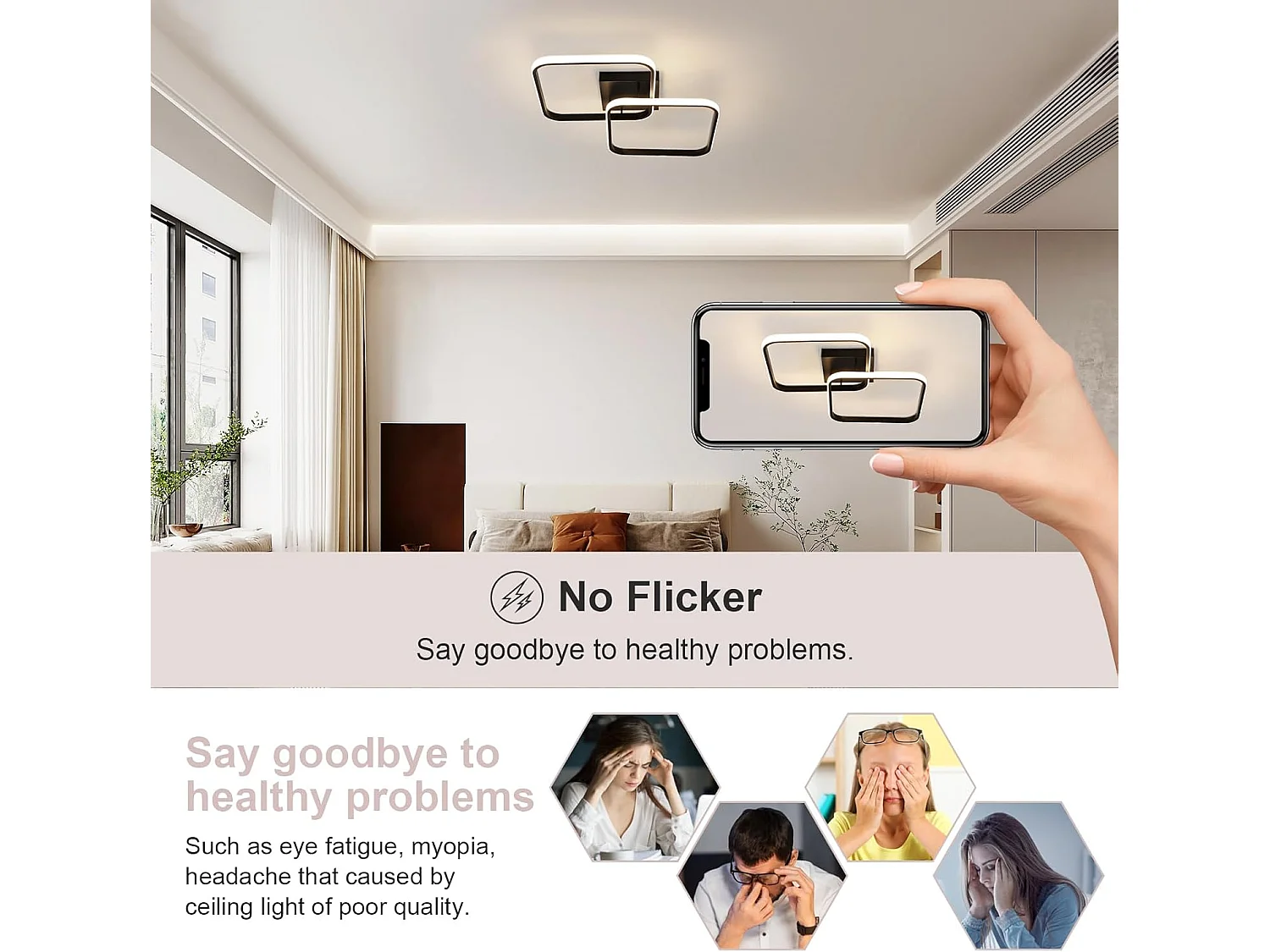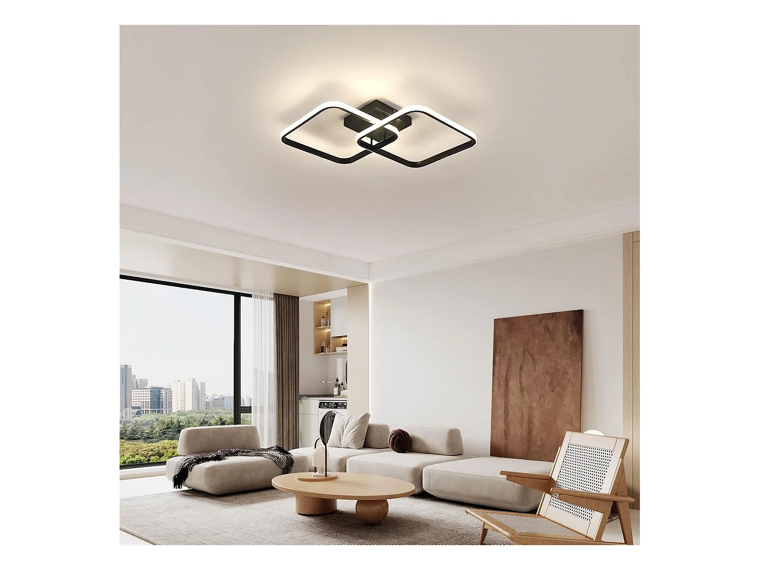 Plafonnier LED, 50W 5625LM Lampe de Plafond, Moderne Luminaire Plafonnier pour Salon, Chambre à Coucher, 72cm, Lumière Chaude 3000K, Noir