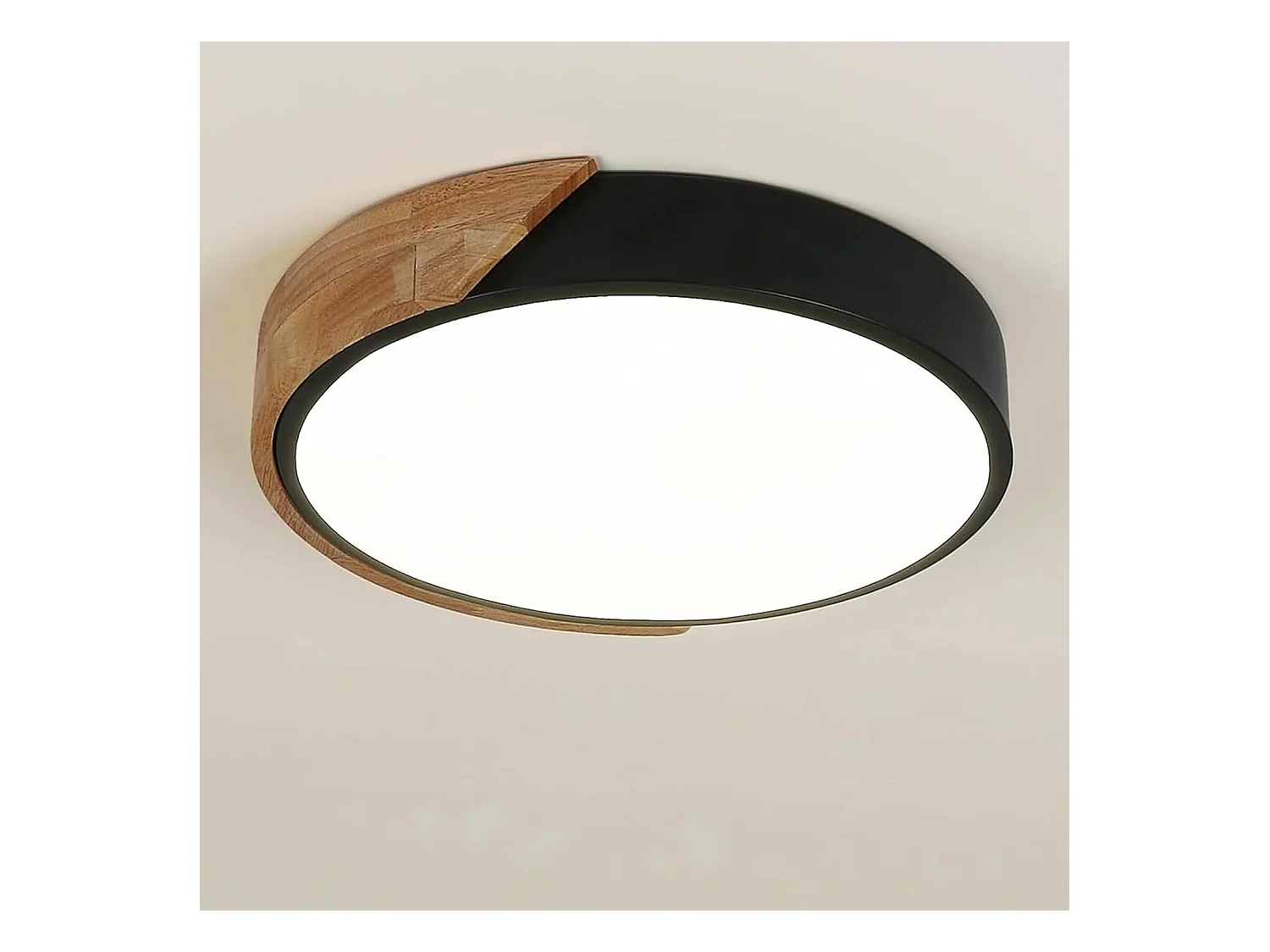 Plafonnier LED Bois 30W Lampe de Plafond Moderne Ronde Parfait pour Chambre Salle de Bain Cuisine Salon Bureau Ø30cm Luminaire Blanc Neutre 4500K (Noir)