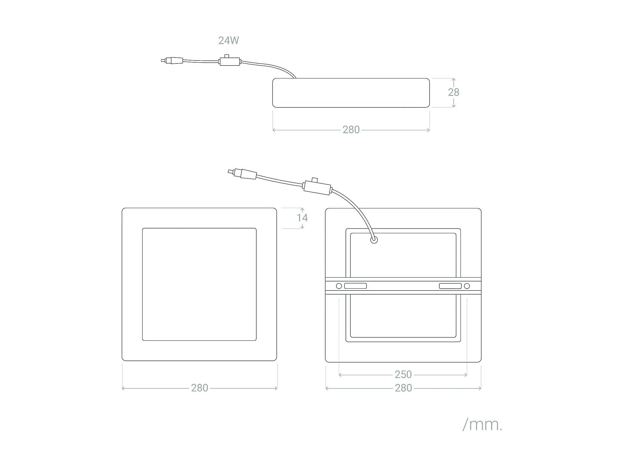 Plafonnier LED Carré 24W Extra-Plat CCT Sélectionnable 280x280 mm Sélectionnable (chaud-neutre-froid)