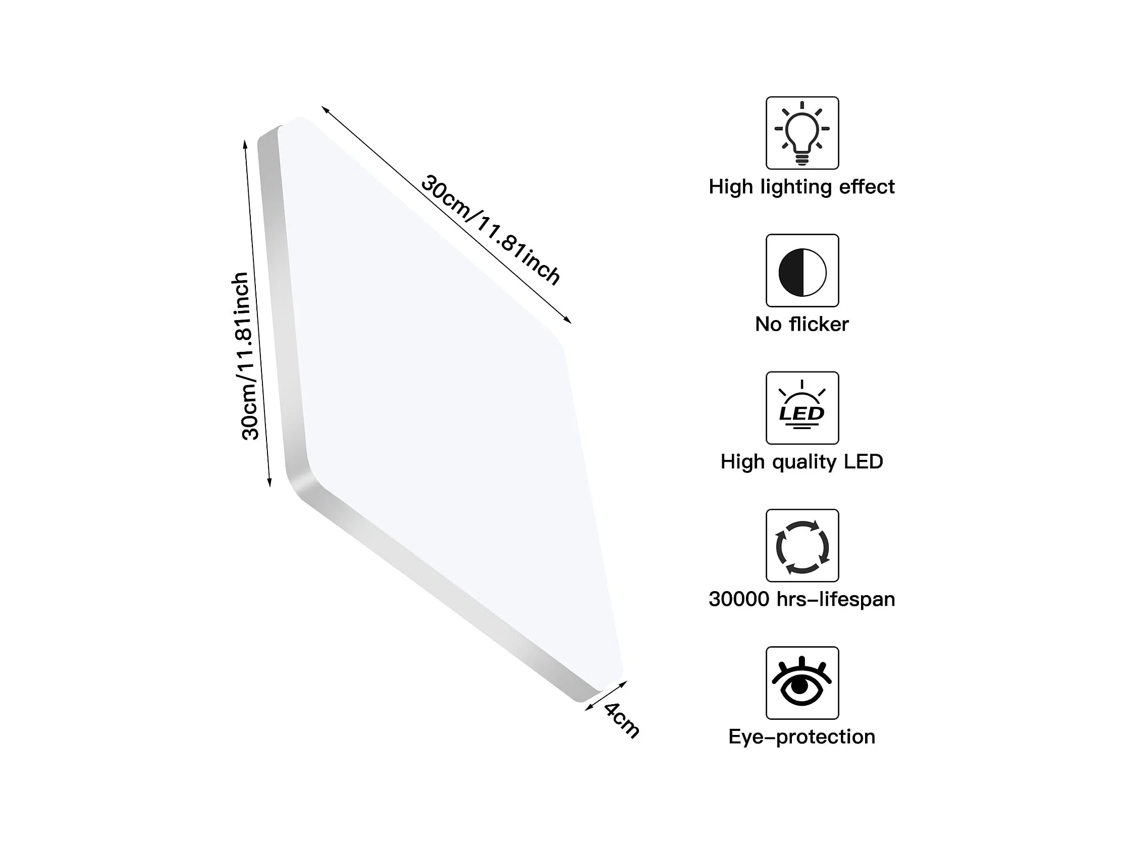 Plafonnier LED Carré Blanc, 3000K Lumière Blanche Chaude 32W, PVC Imperméable IP44, Idéal pour Salle de Bain Chambre Balcon