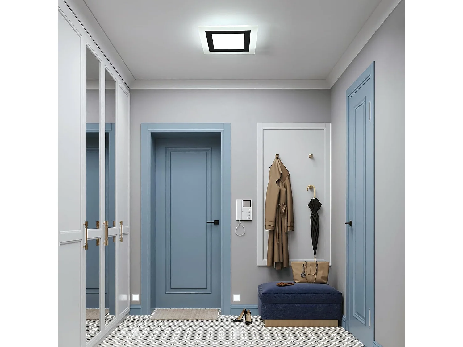 Plafonnier LED carré moderne 32 W 2 400 lm Noir Convient pour chambre, salon, cuisine, salle à manger Lumière blanche chaude 3 000 K