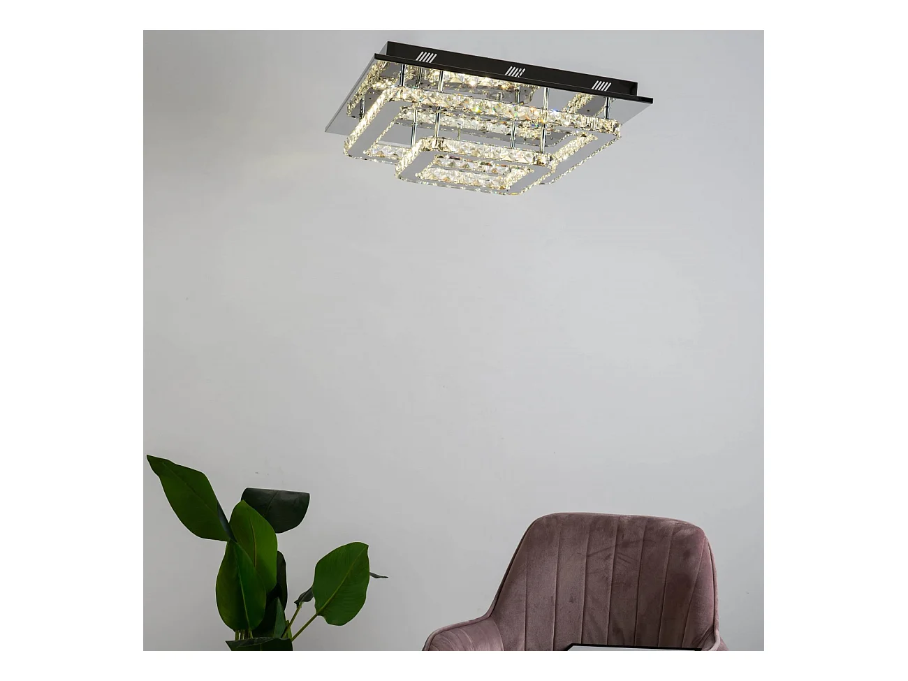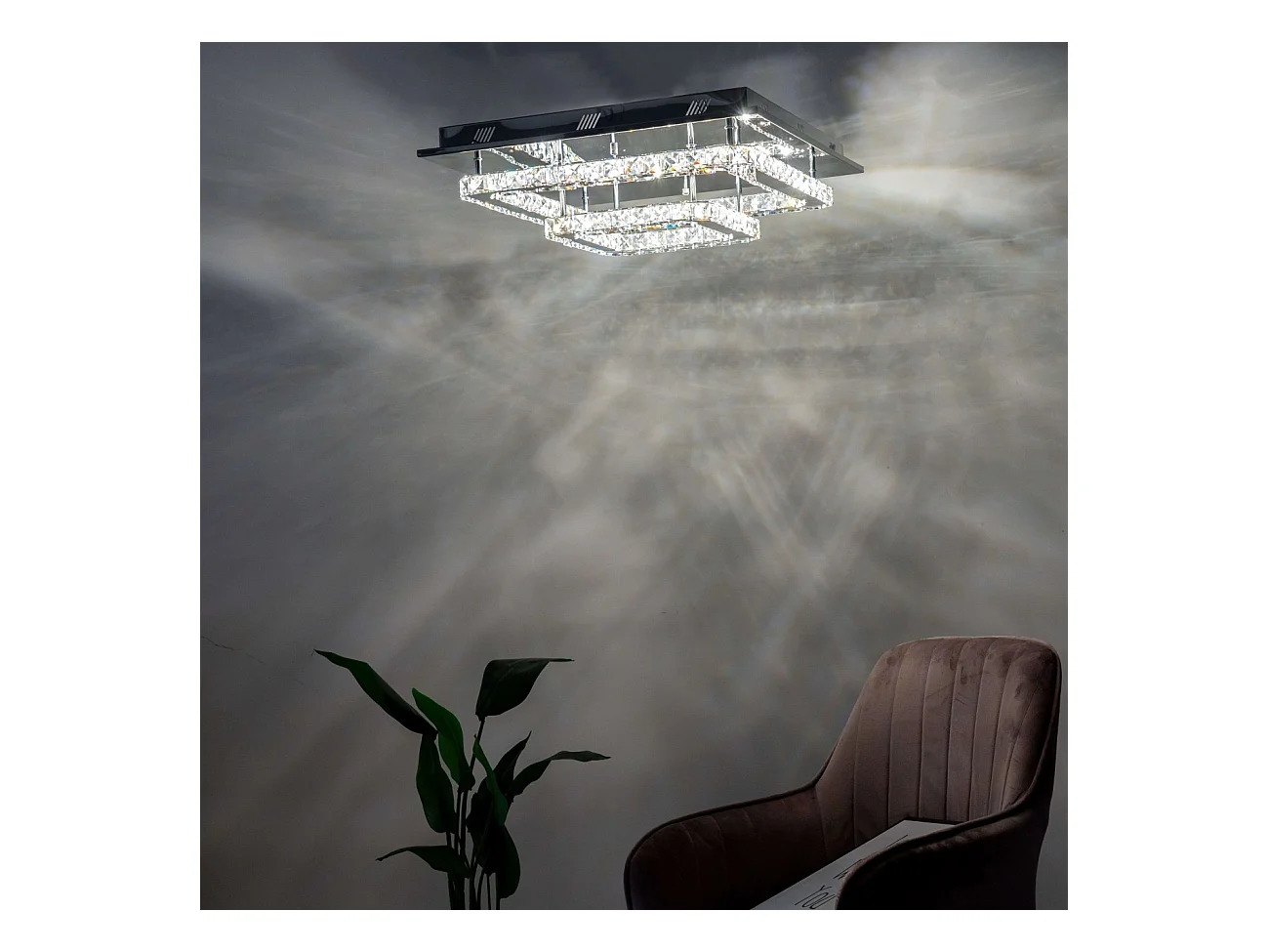 Plafonnier LED cristal 2 carrés design - Wade