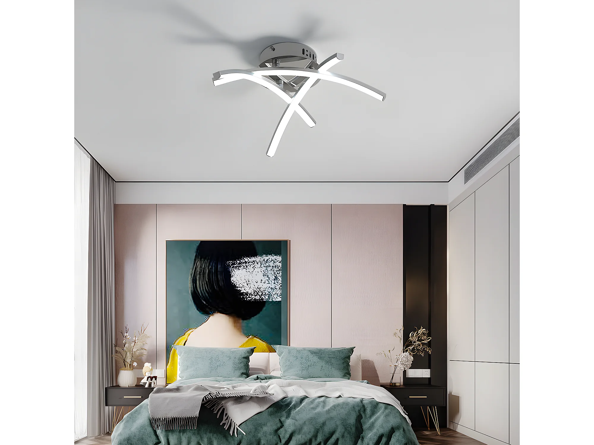 Plafonnier LED Trident Wave Argenté 18 W Diamètre 36 cm Lumière chaude pour salon/chambre/cuisine