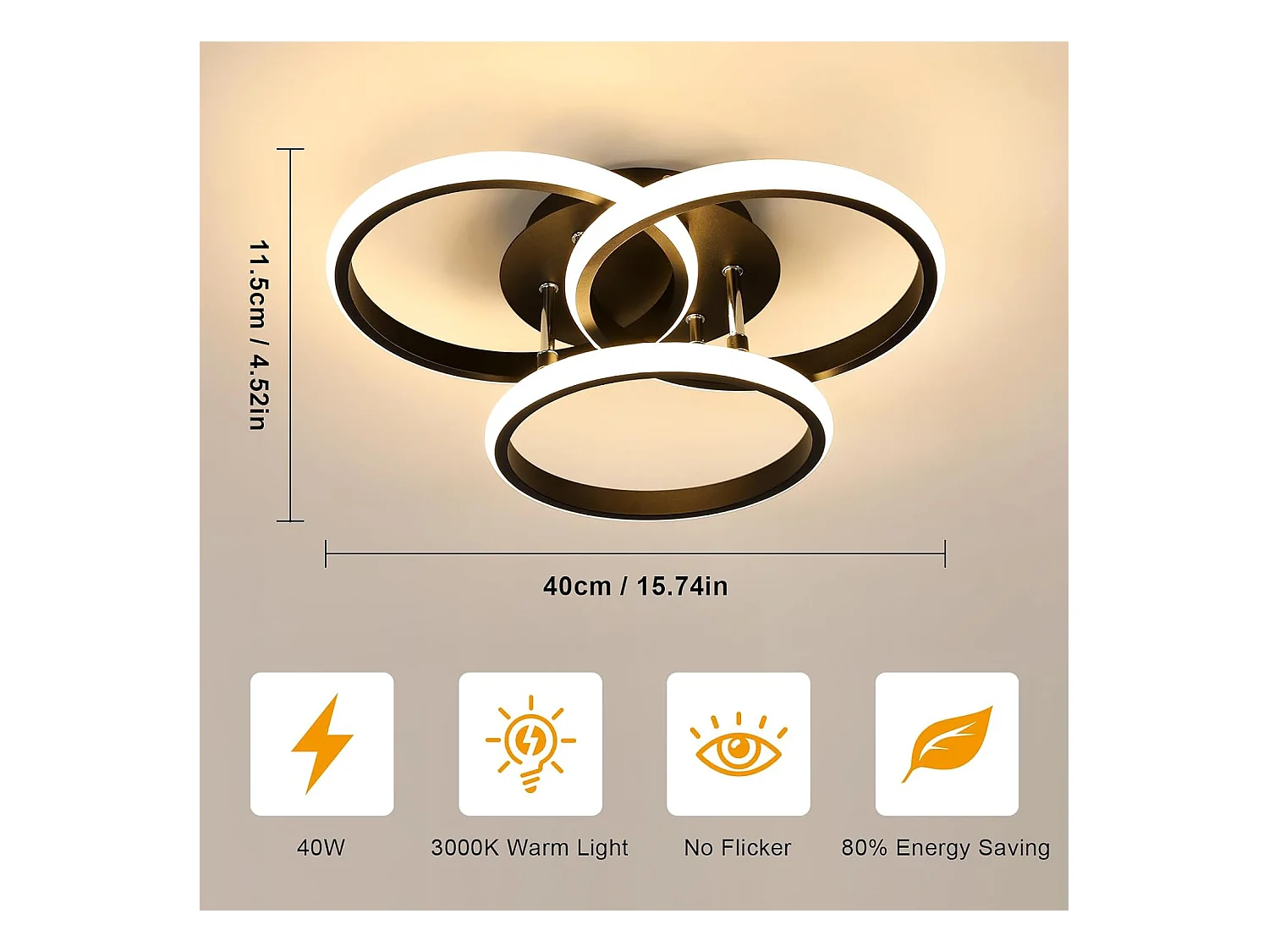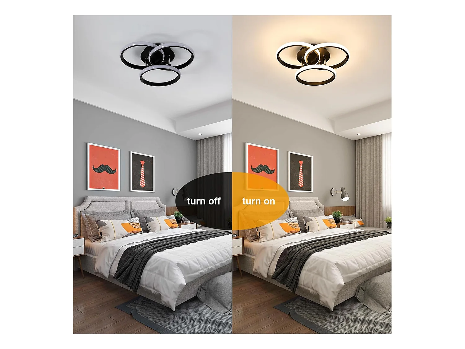 3 cercle de lampadaires de plafond, éclairage de plafond LED moderne noir, utilisé pour les couloirs, les entrées, les chambres, les balcons, les allées,30W