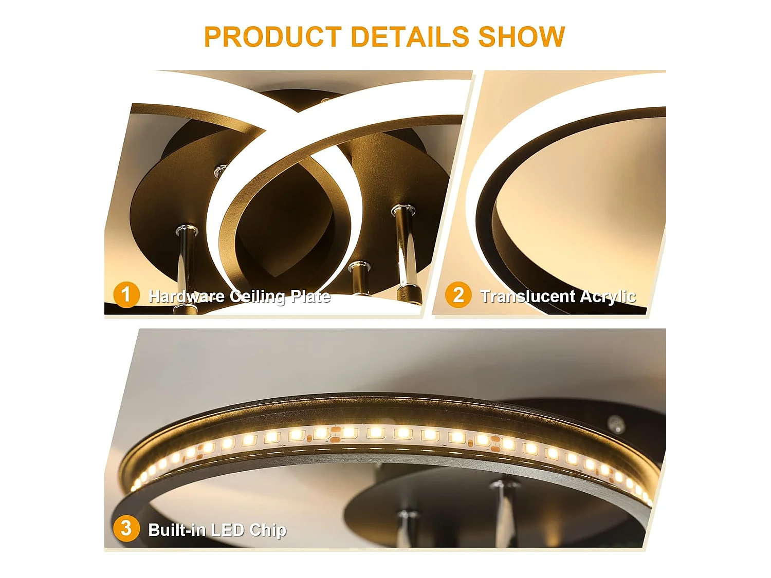Plafonnier LED Moderne, Noir 39W 4725LM, Design Créatif Rond, Idéal pour Salle à Manger, Couloir, Chambre, Cuisine, Balcon, Lumière Douce 3000K