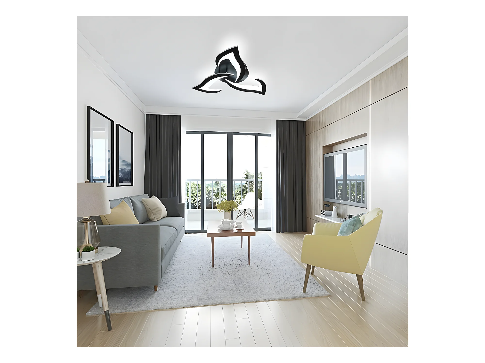 Plafonnier led moderne de pétale, noir, 60*60*8cm, 60w 4500lm, en métal, pour chambre