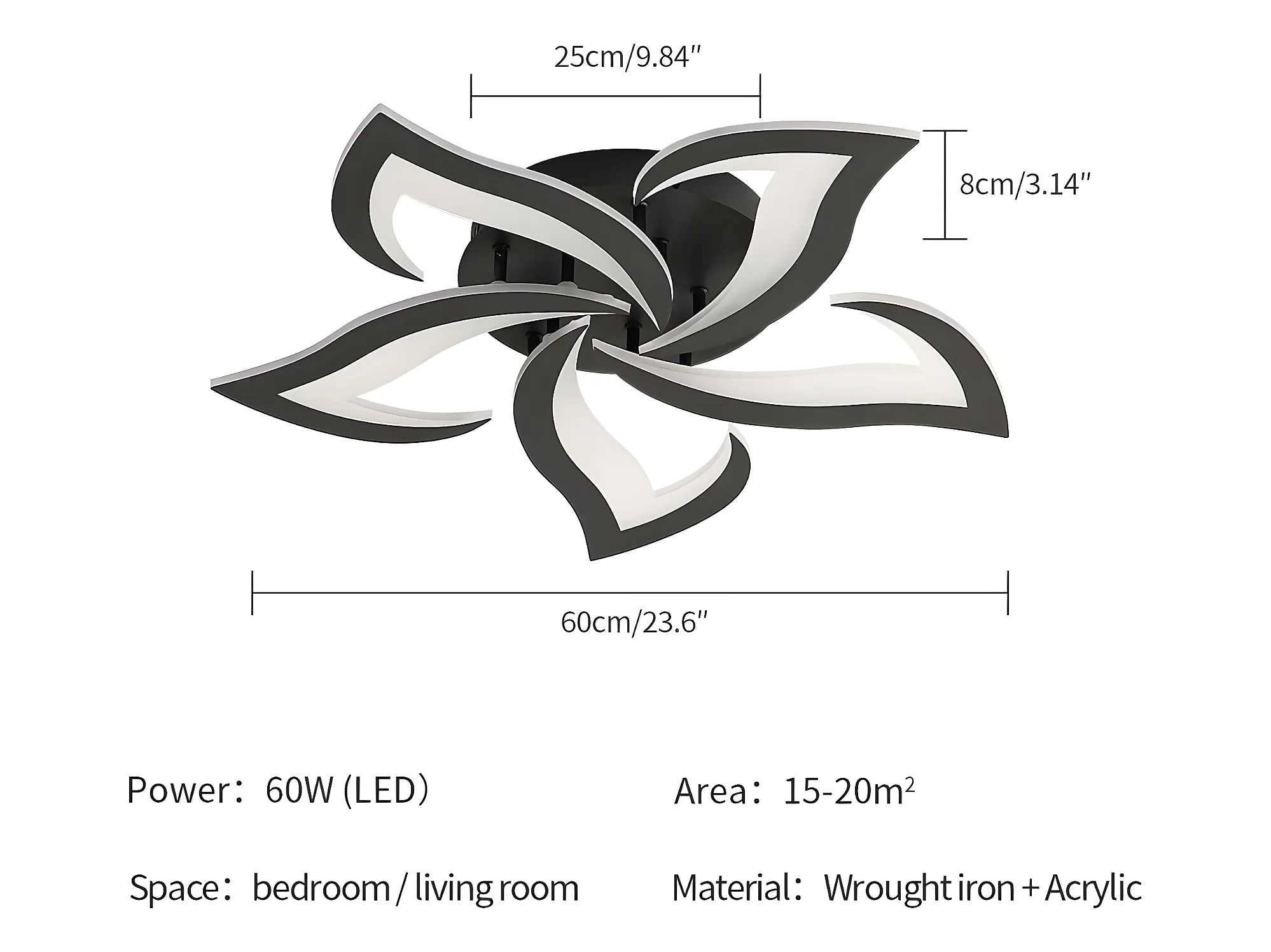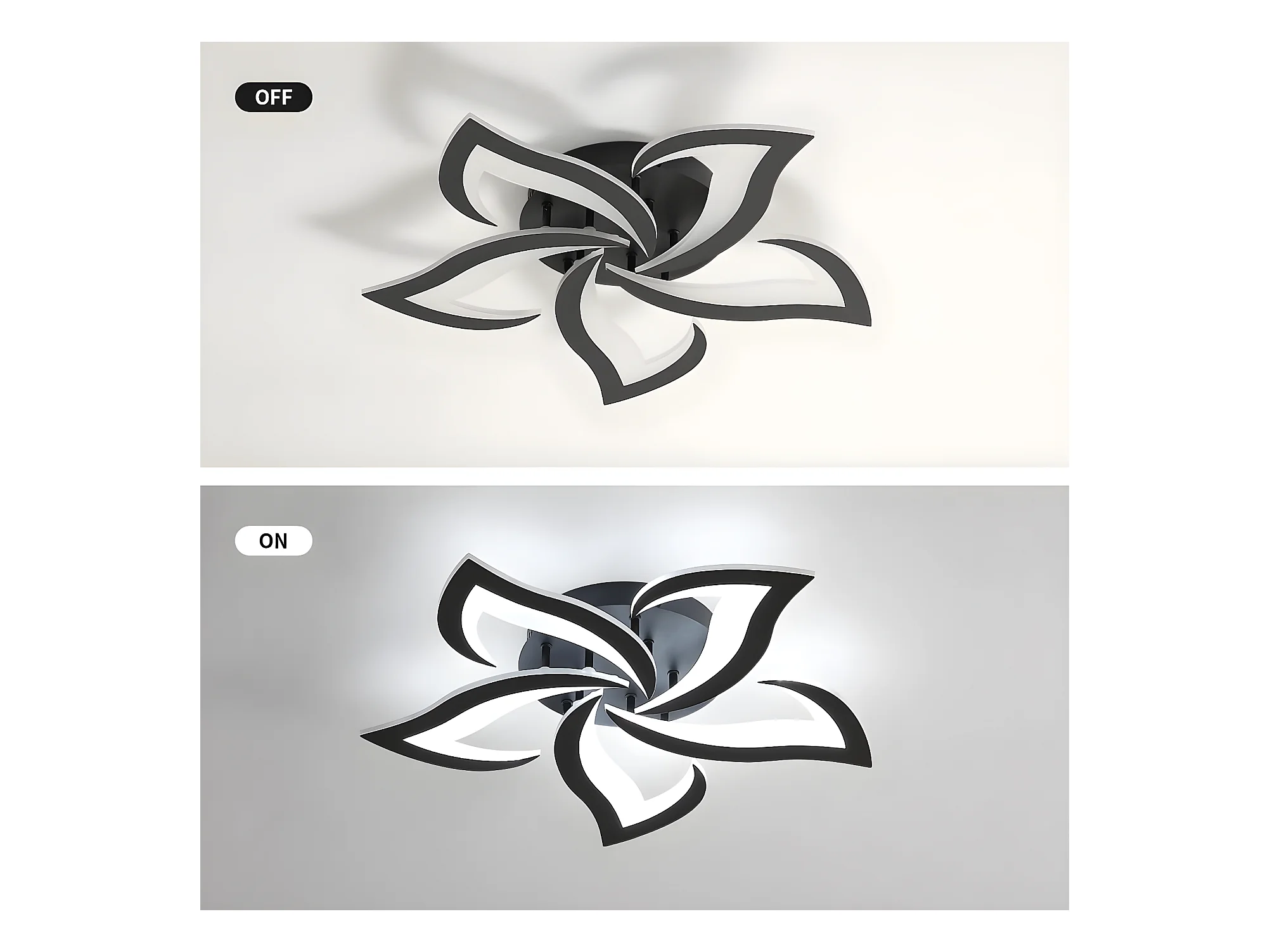 Plafonnier led moderne de pétale, noir, 60*60*8cm, 60w 4500lm, en métal, pour chambre