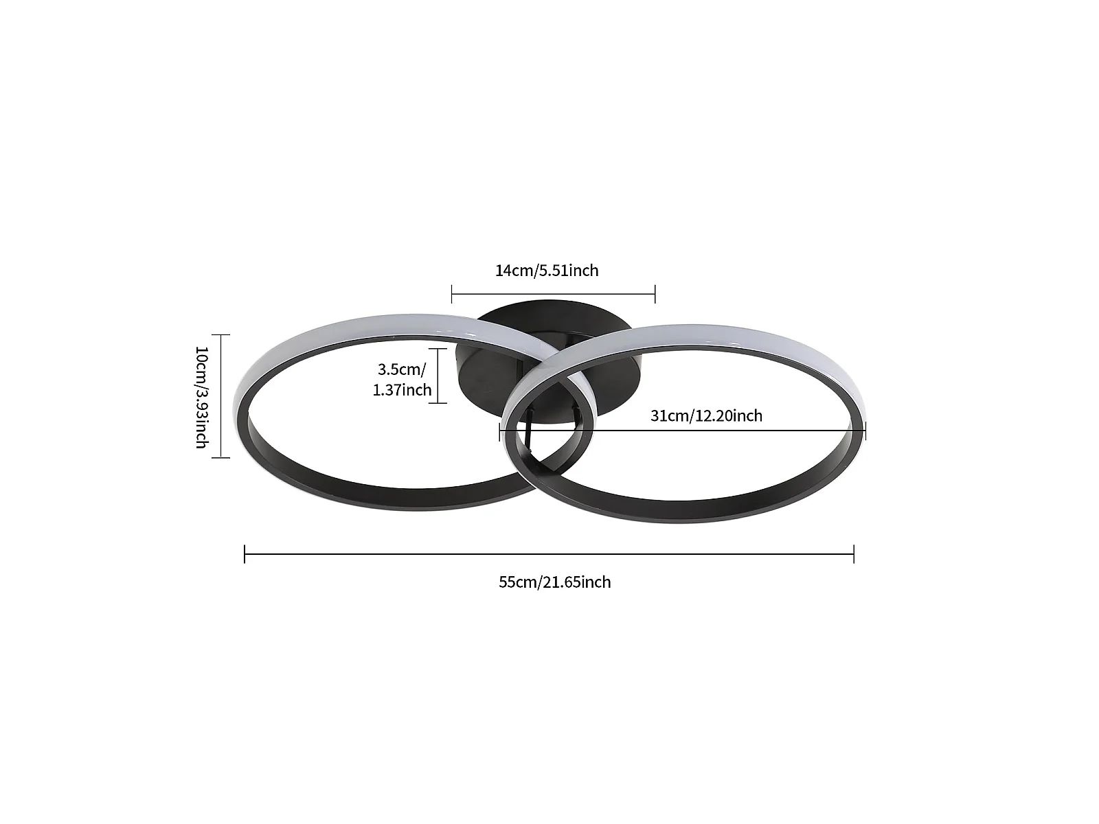 Plafonnier LED moderne double anneau, noir, 54*31*9cm, 42w, lumière blanc neutre