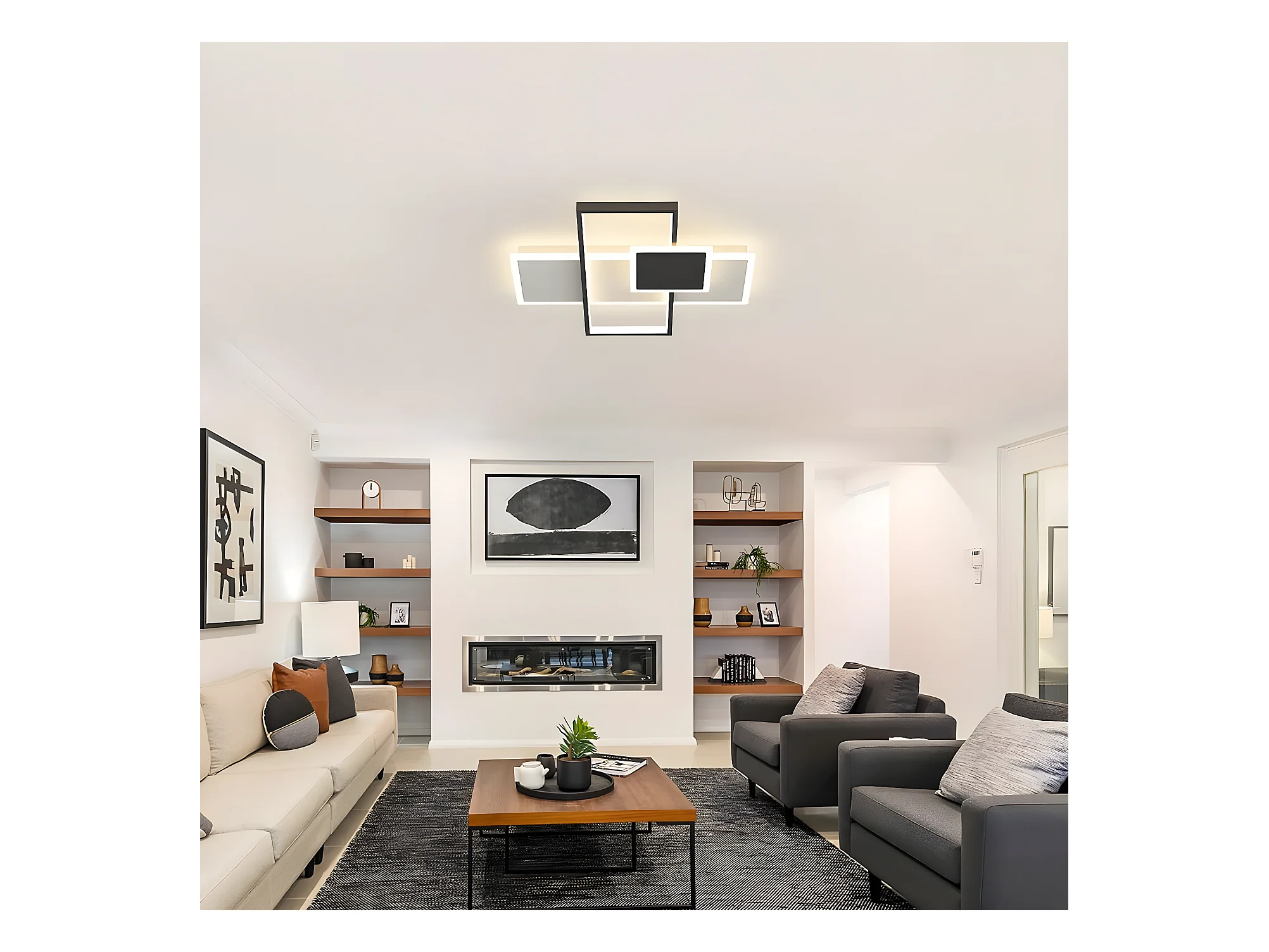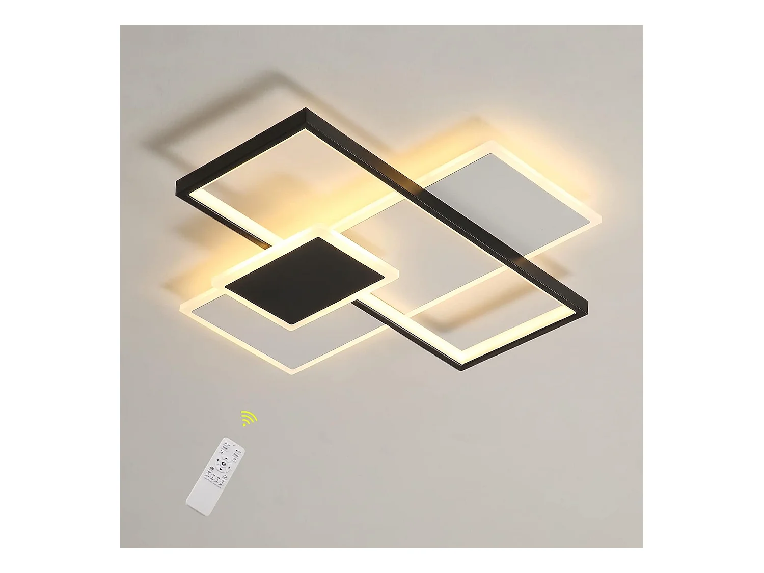 Plafonnier led moderne dimmable avec télécommande, blanc noir, 52*52*7cm, 2700k-6500k