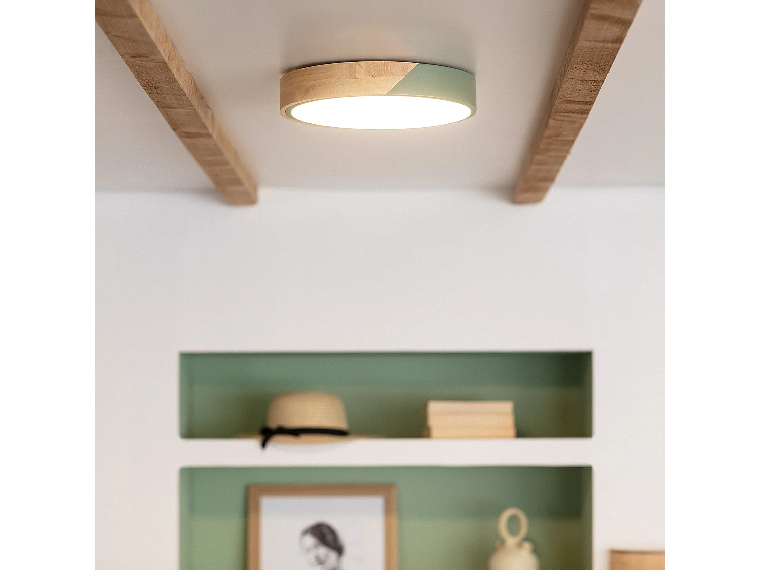 Plafonnier LED Rond Bois 18W CCT Sélectionnable Semi-Dari Ø320 mm Vert