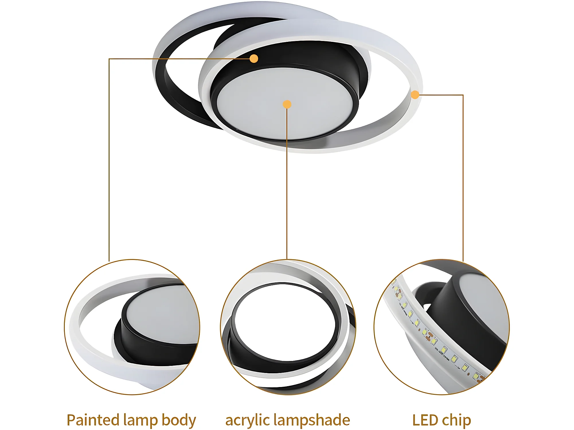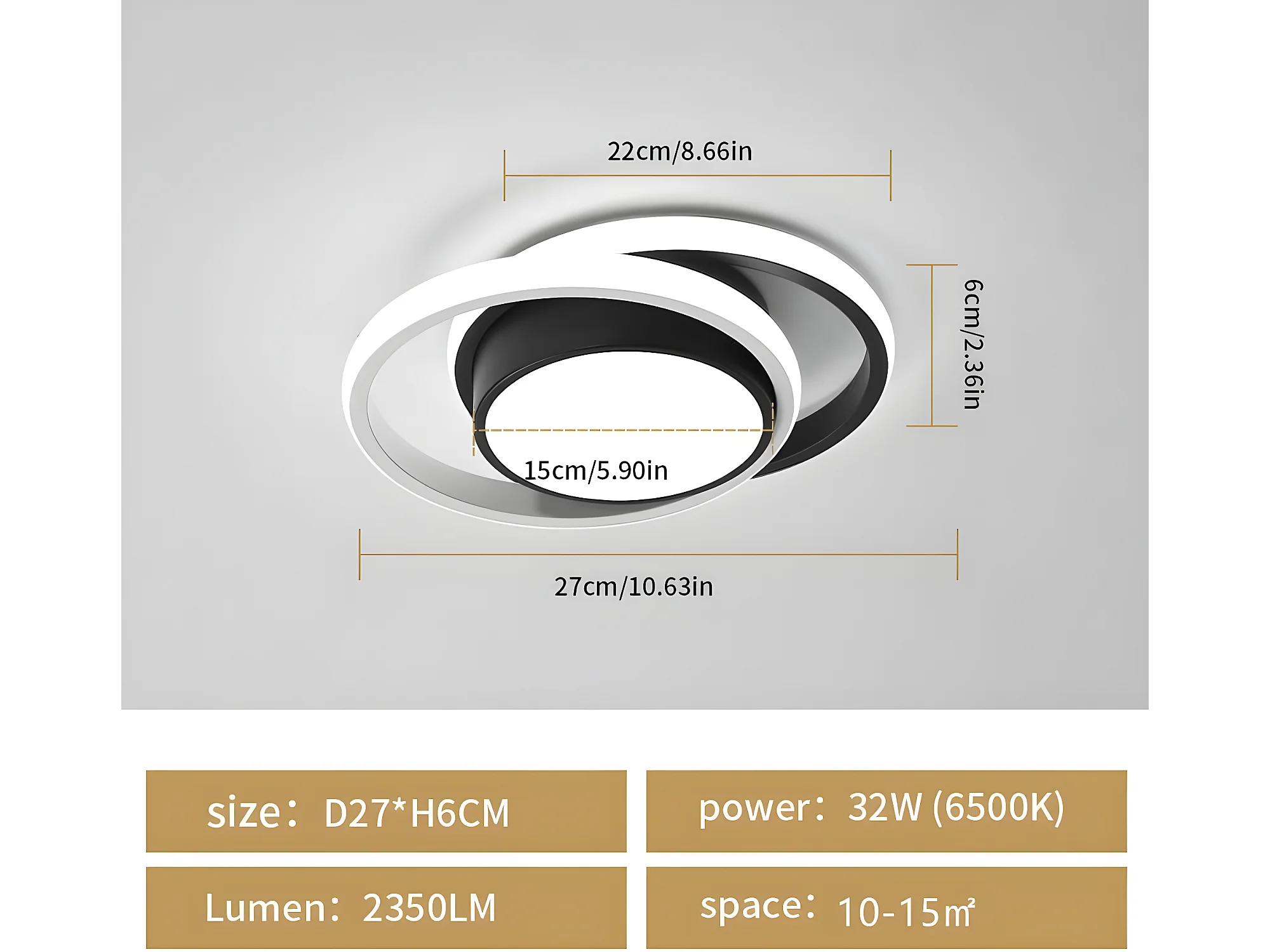 Plafonnier LED rond Intérieur, noir et blanc, 27*22*6cm, 32W 2350LM, en metal