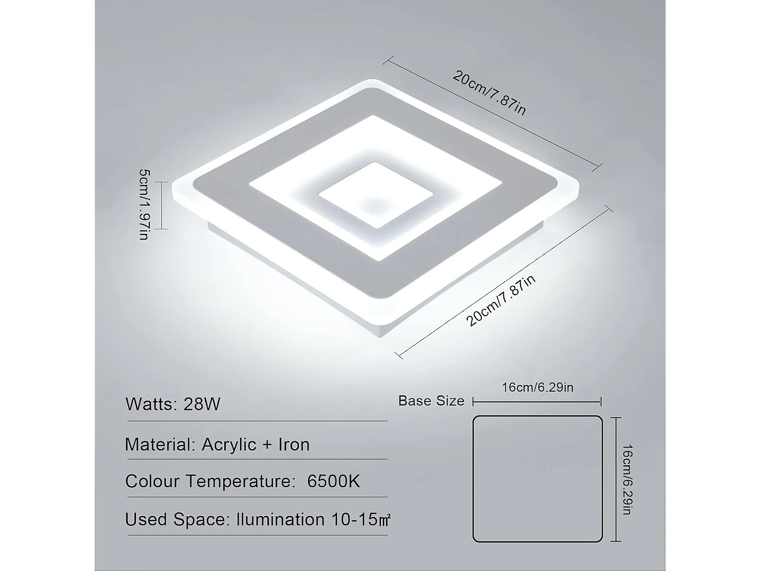 Plafonnier LED Carré Design Simple en Acrylique Blanc Idéal pour Chambre Salon Couloir(30W 6500K Lumière Blanche Froide)