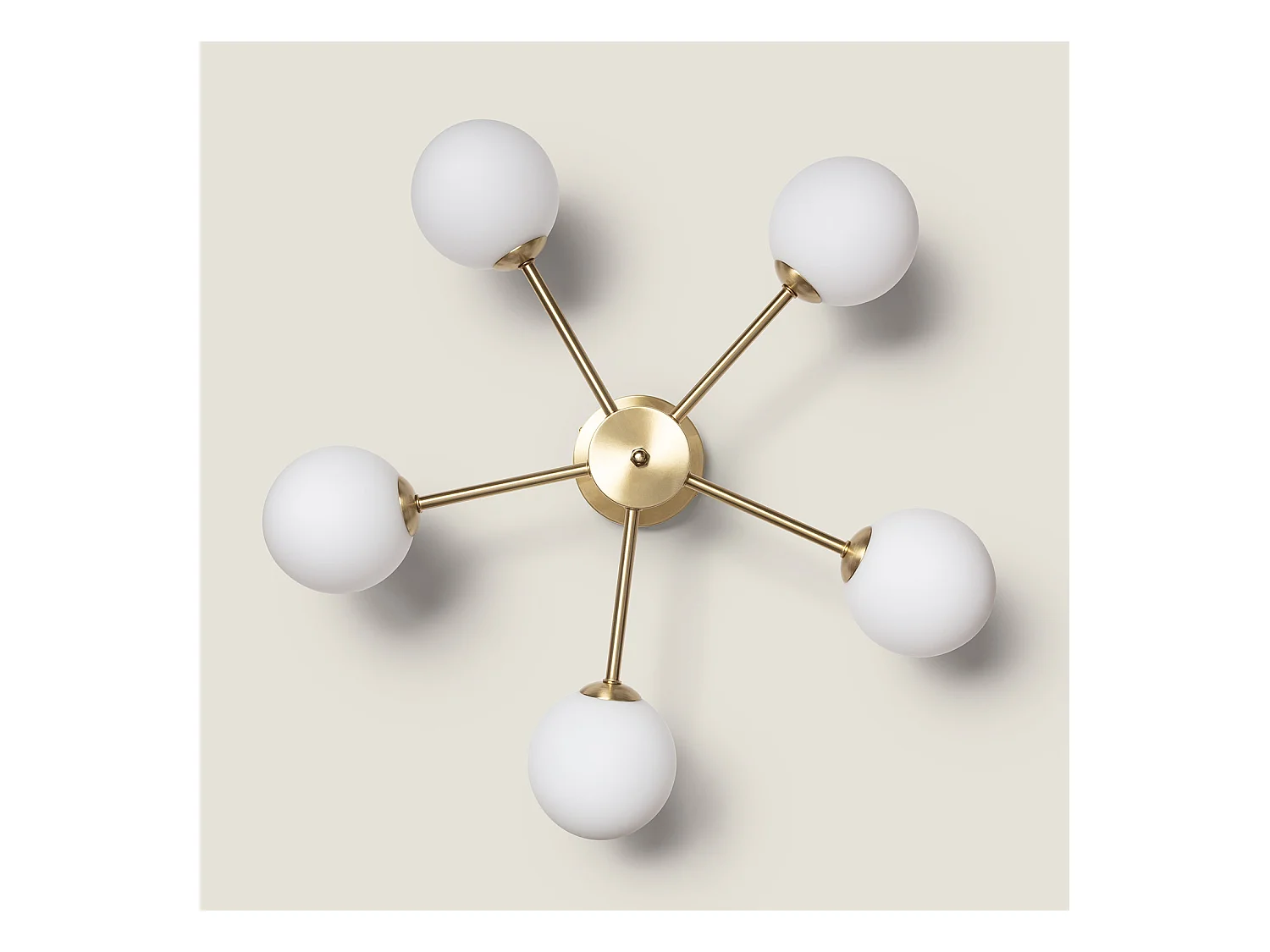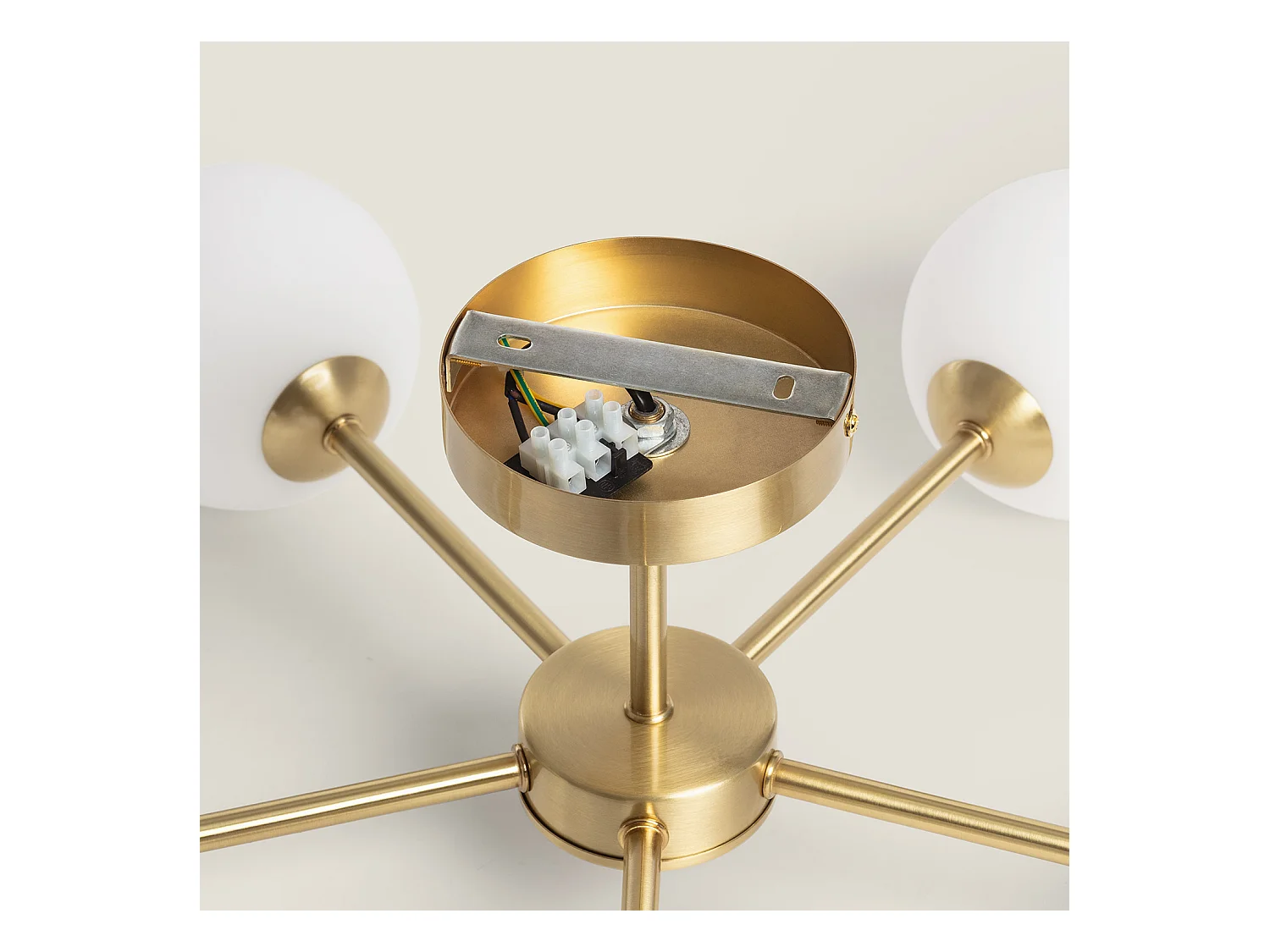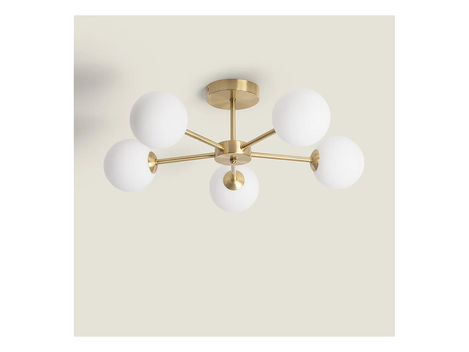 Plafonnier Métal et Verre Moonlight Brass 5 Spots Doré