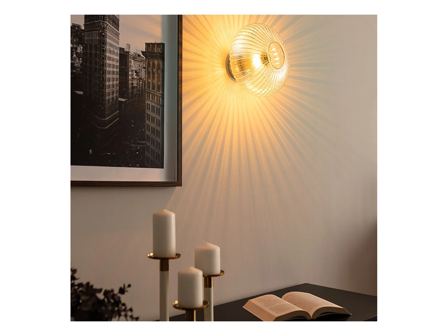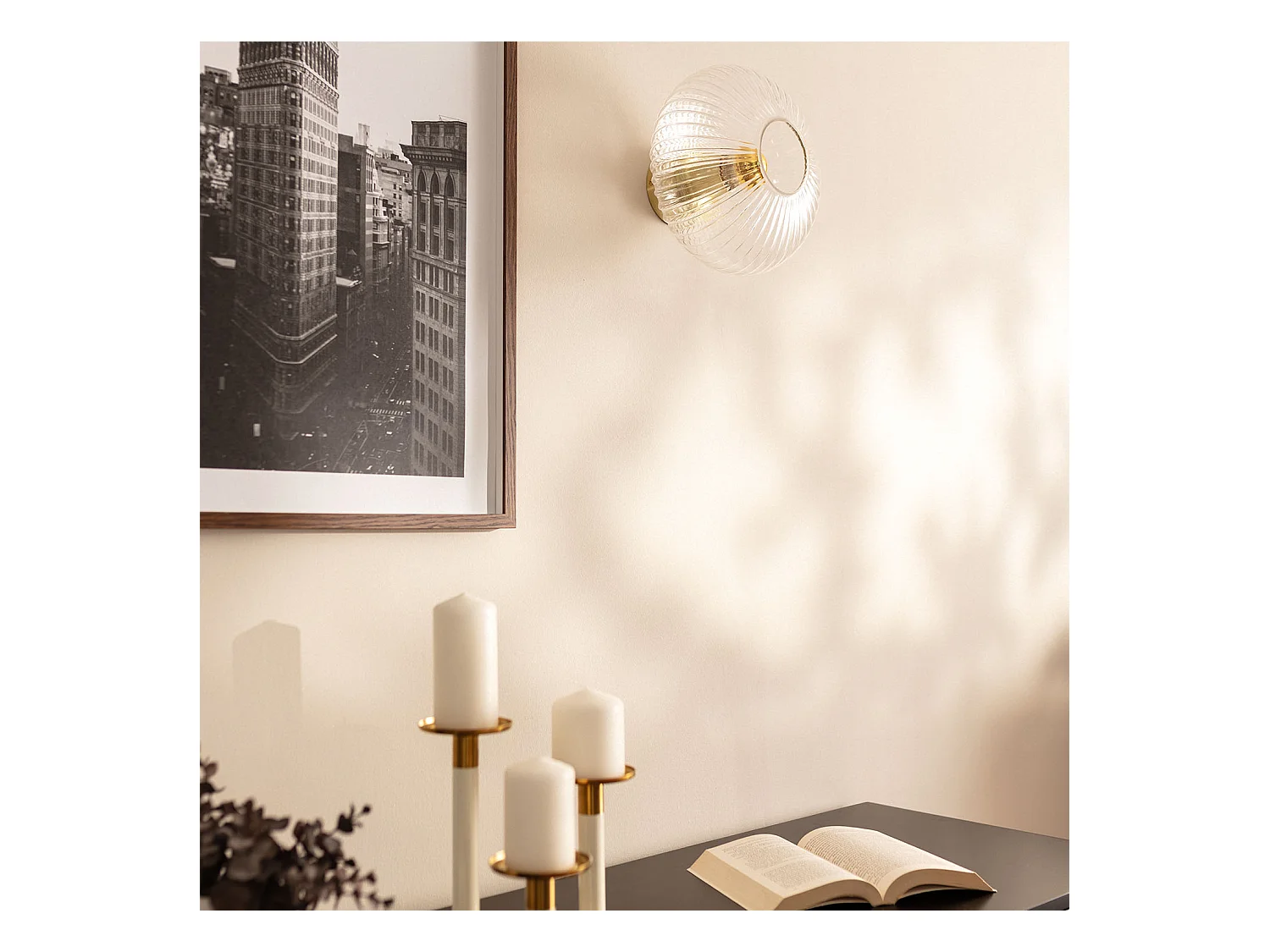 Lot de 2 appliques murales en métal avec globe - D. 15 x 27 cm - Doré - BARLATI