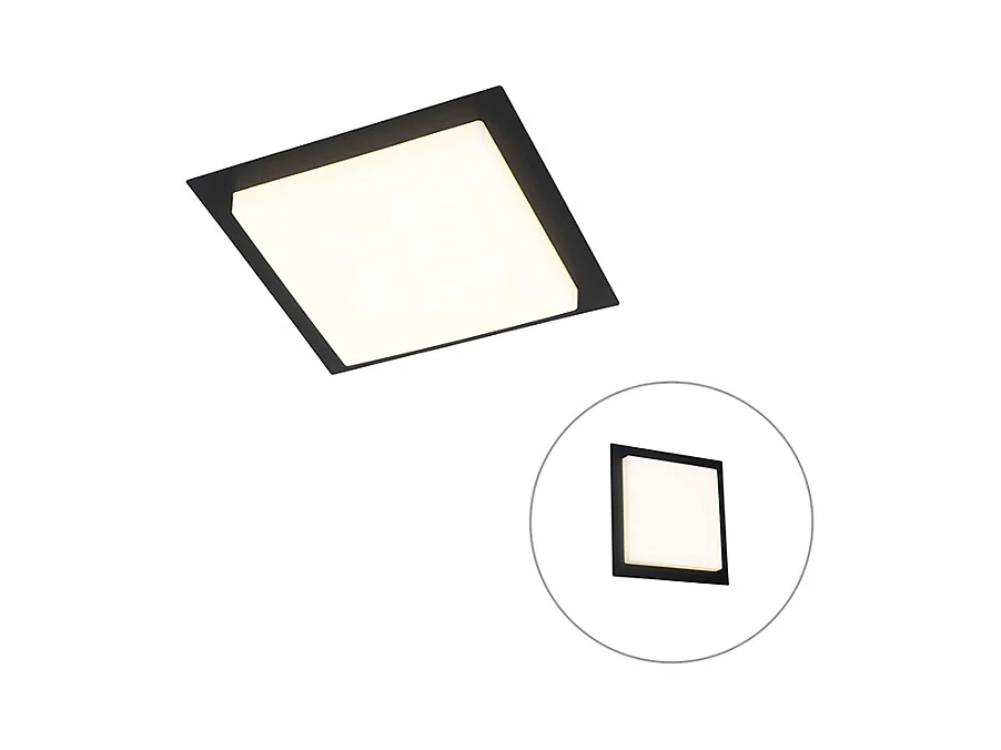 Plafonnier moderne carré noir avec LED IP44 - Lys