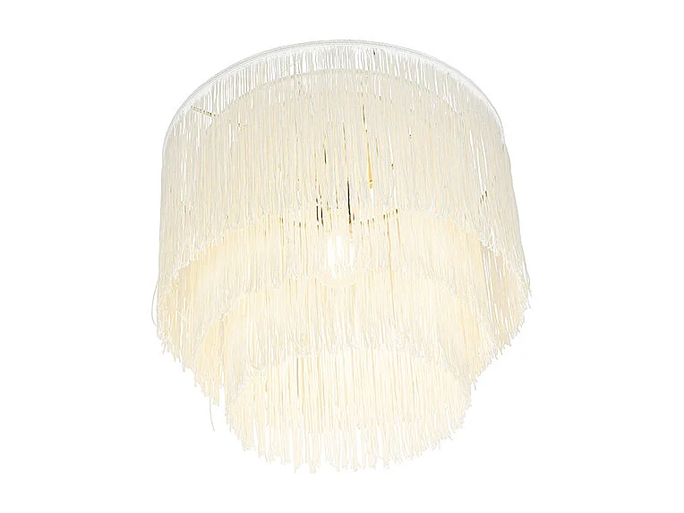 Plafonnier oriental abat-jour crème or à franges - Franxa