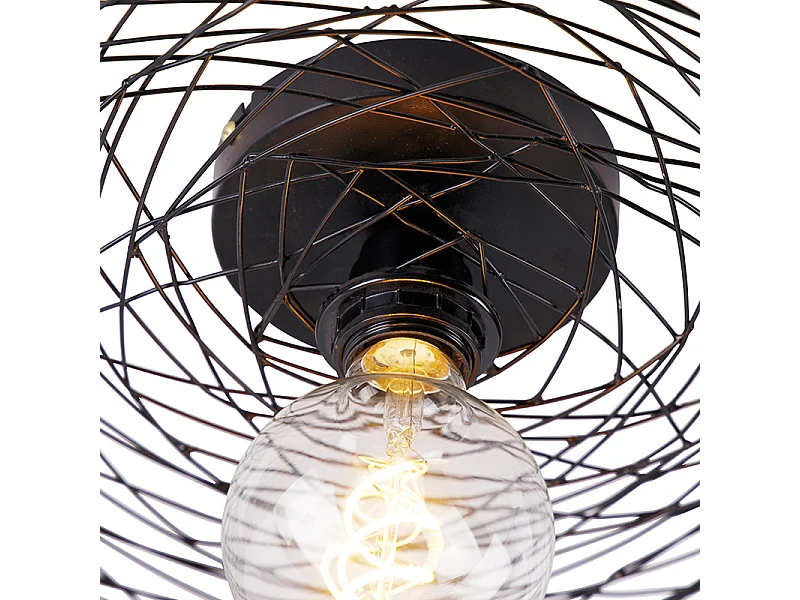 Plafonnier oriental noir avec rotin 25 cm - Emir