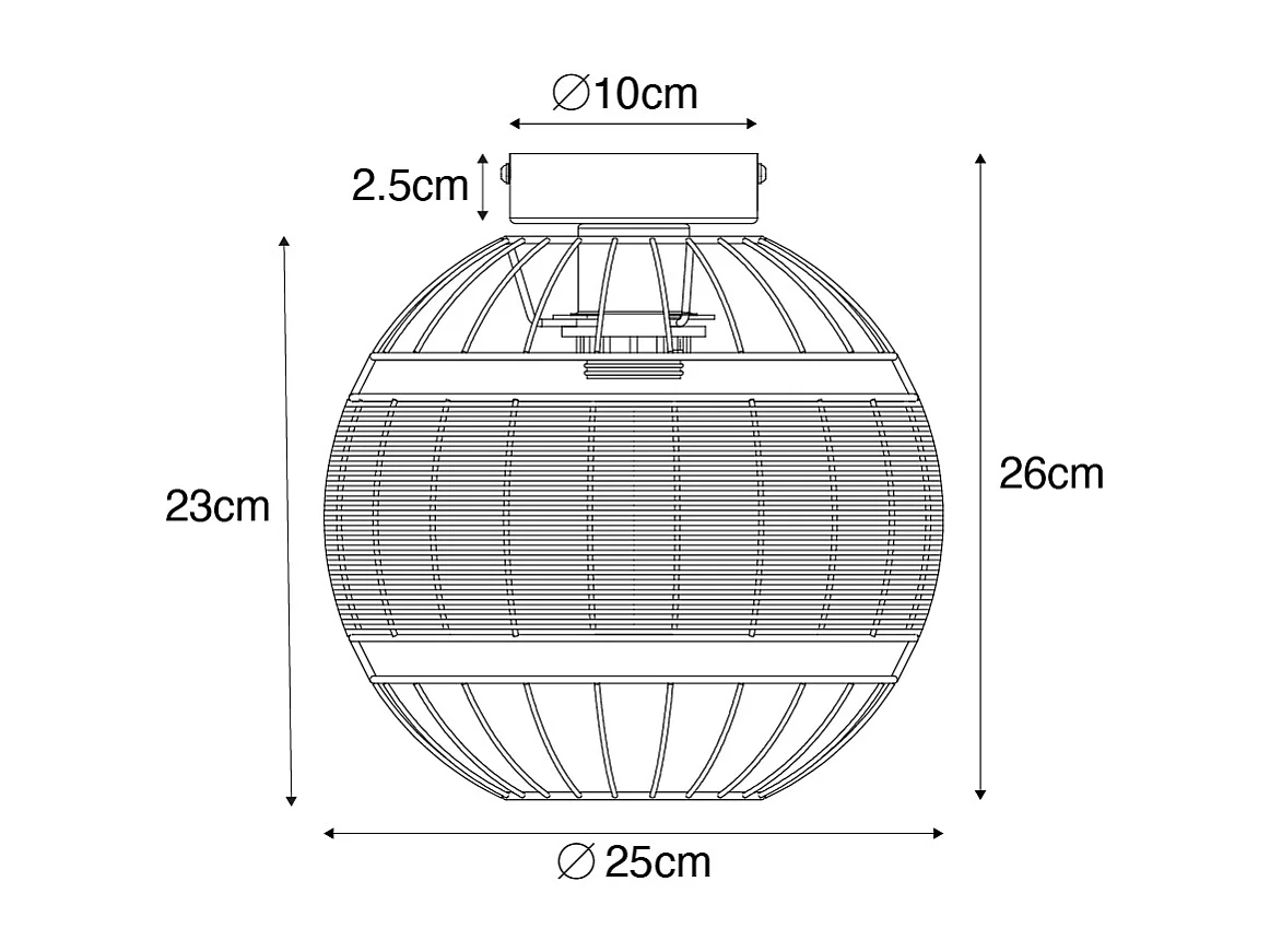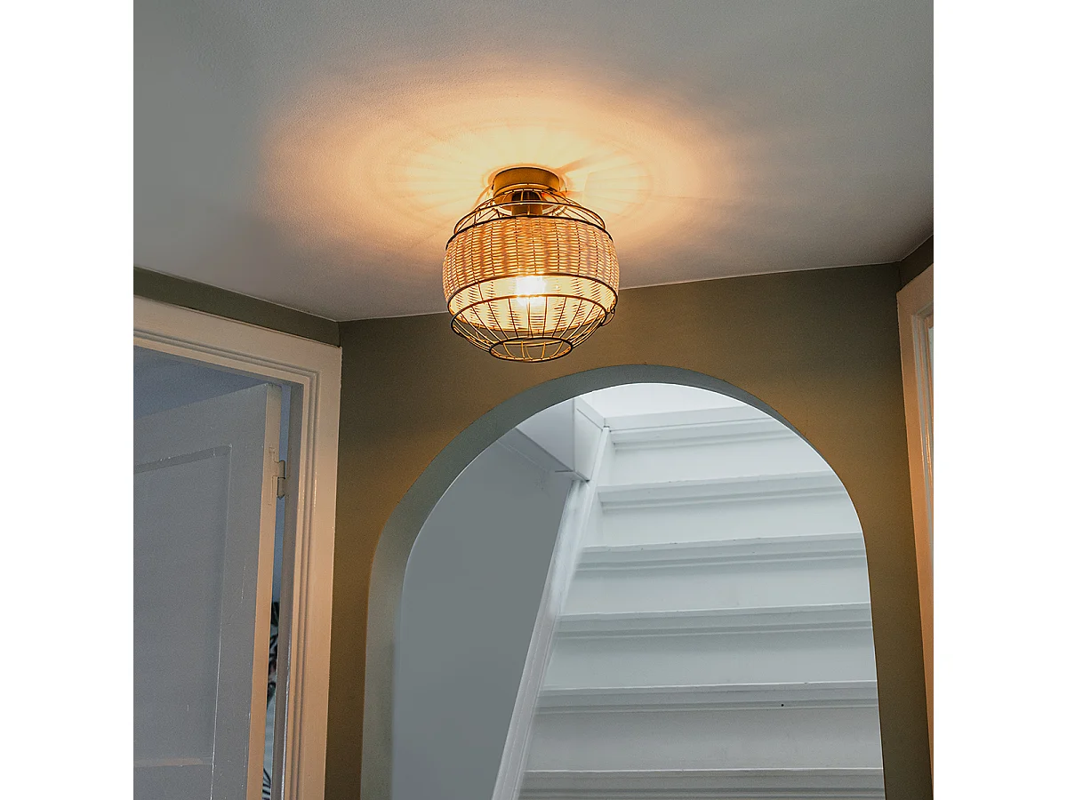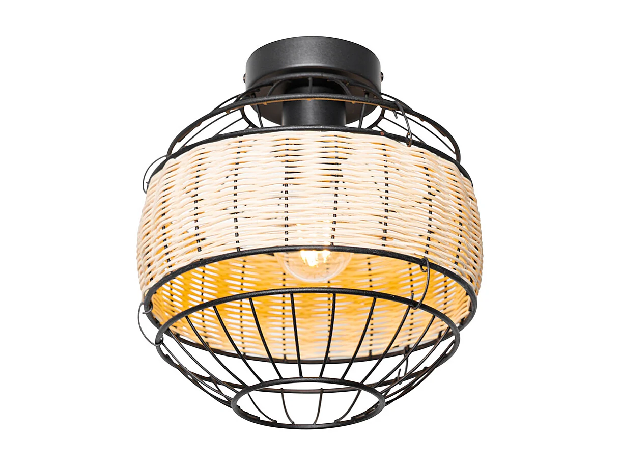 Plafonnier oriental noir avec rotin 25 cm - Emir