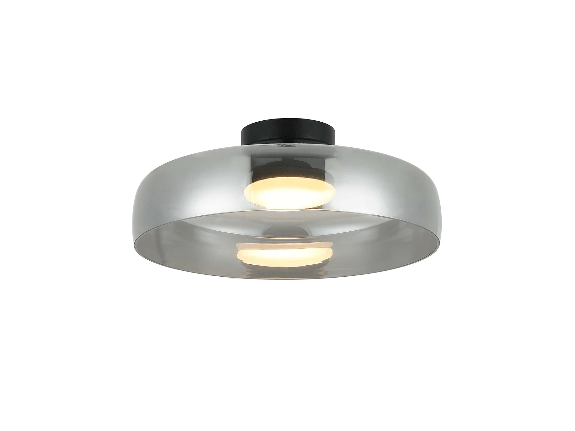 Plafonnier ou applique dôme en verre fumé et métal noir - Riccardo