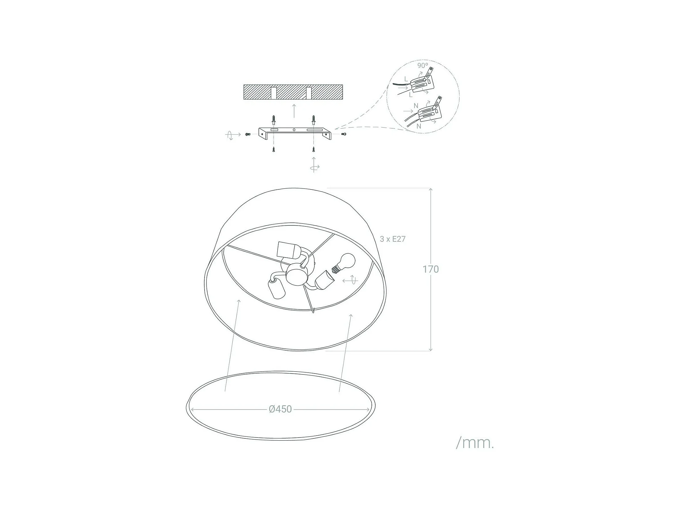 Plafonnier Rond Tissus Ranje Ø500 mm Gris
