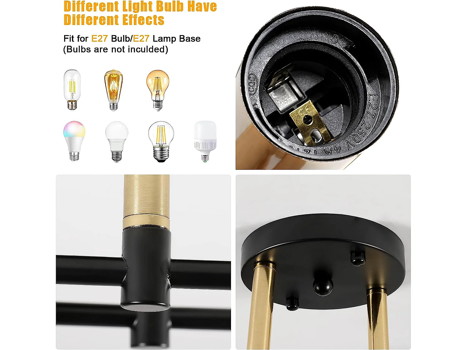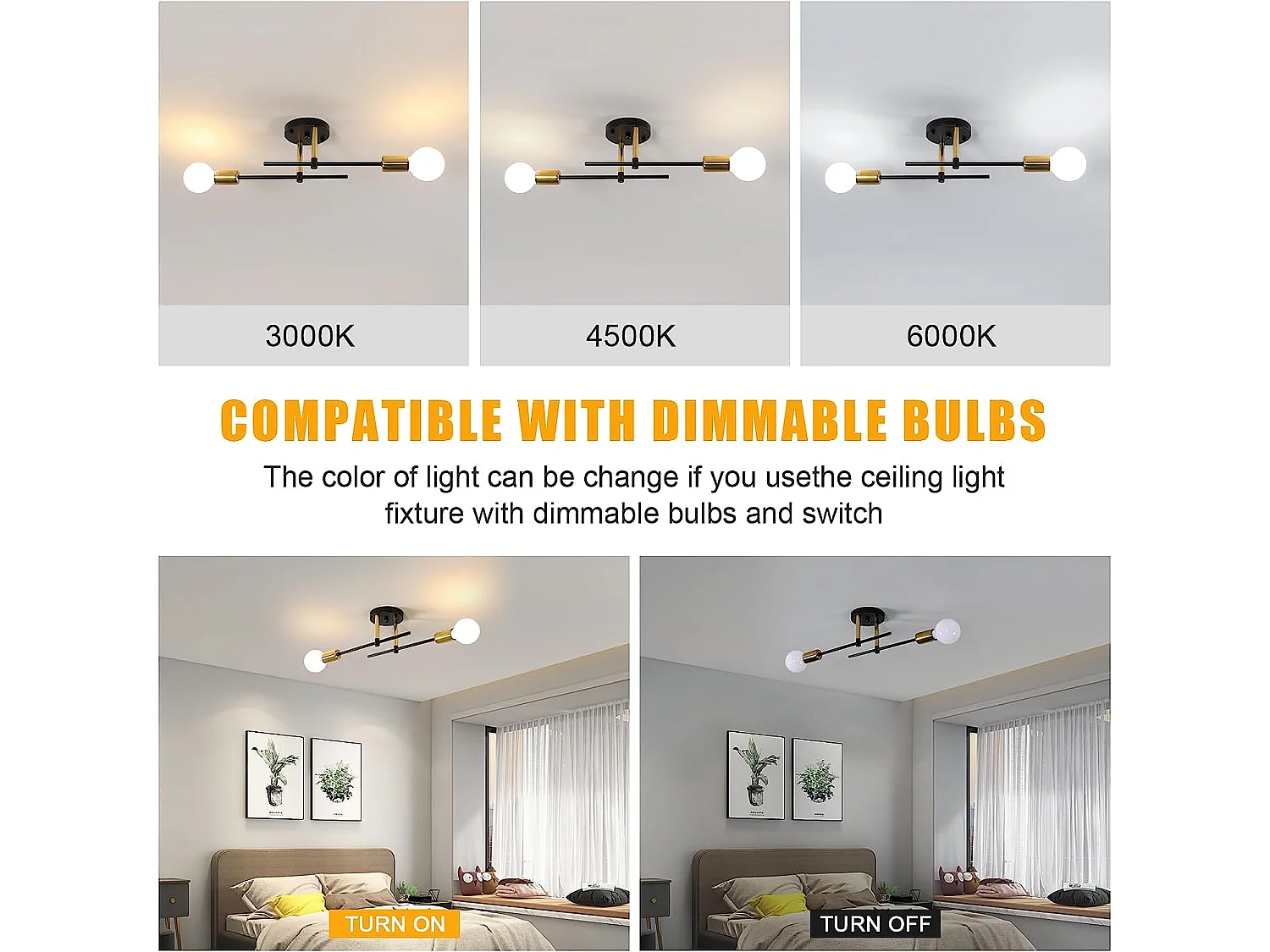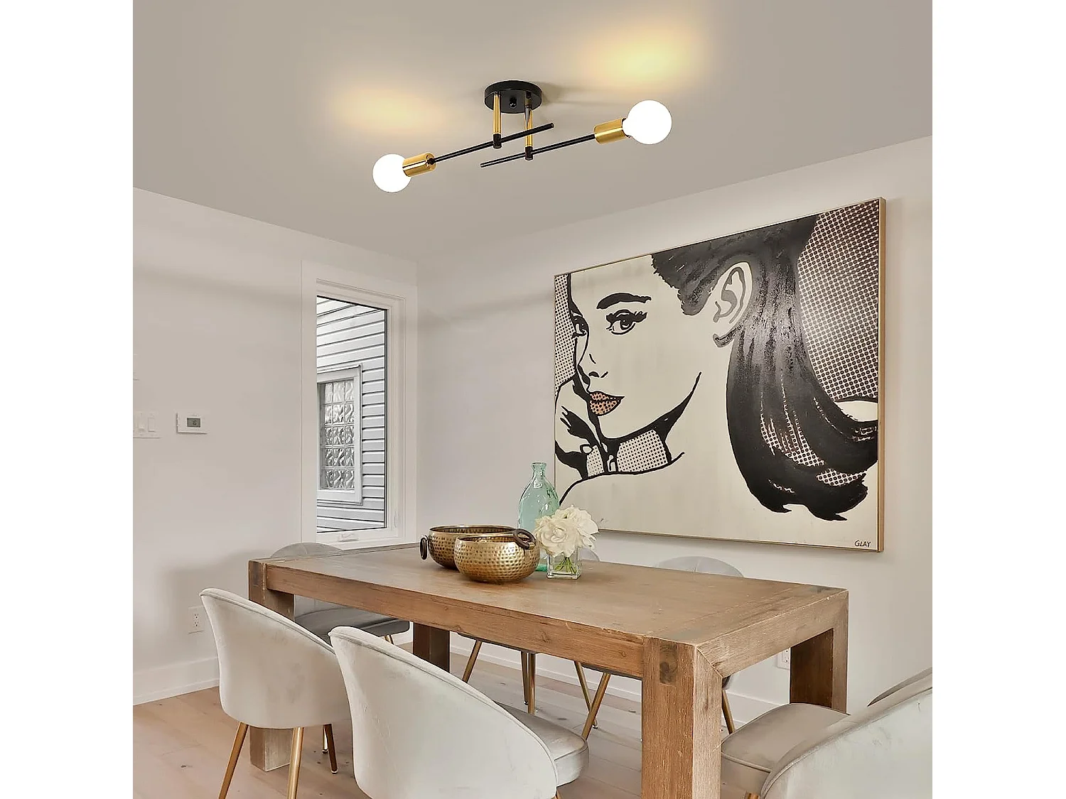 Plafonnier vintage E27 base, noir or, 37.5*7*13.5cm, pour salon chambre, sans ampoules