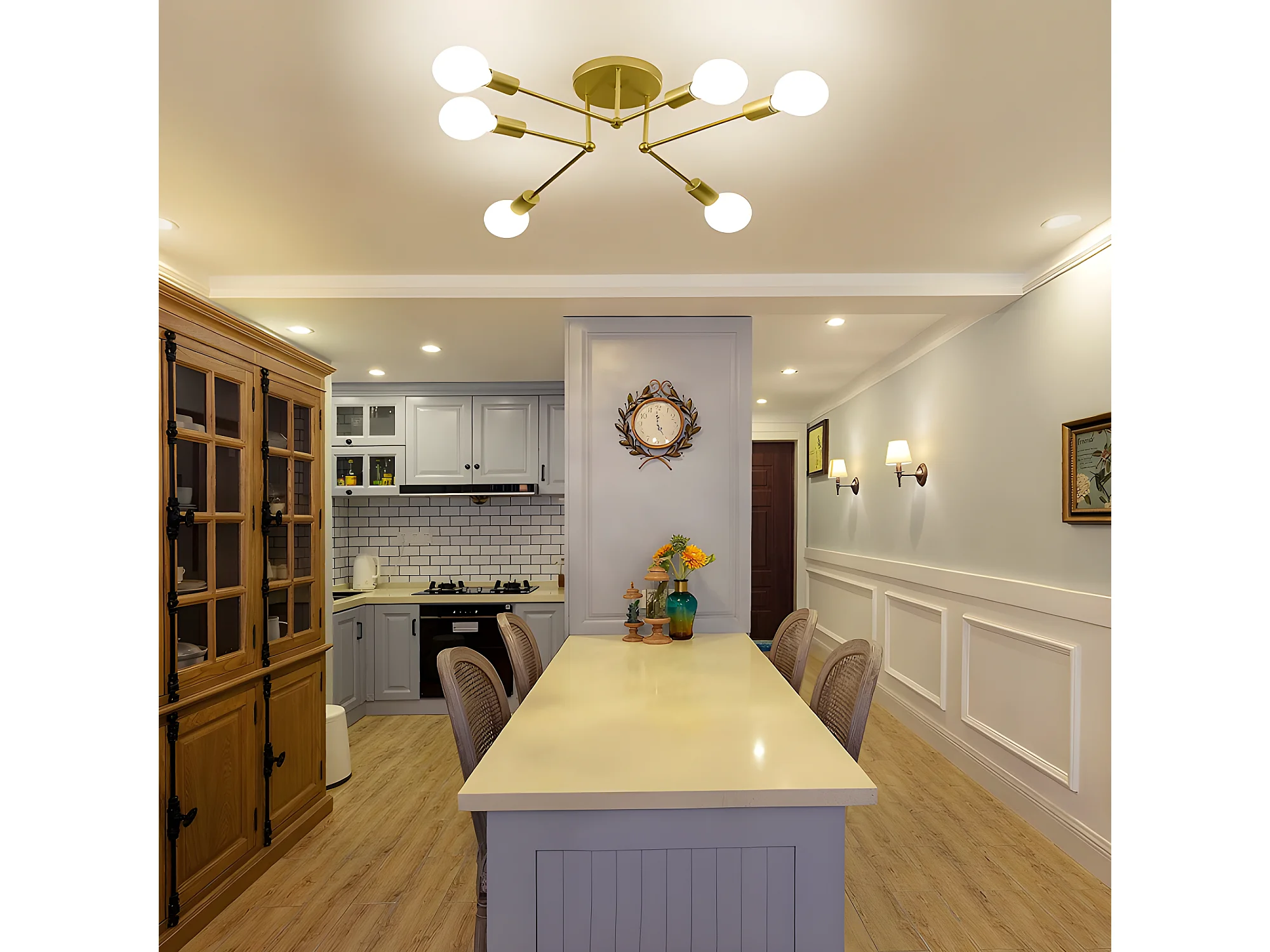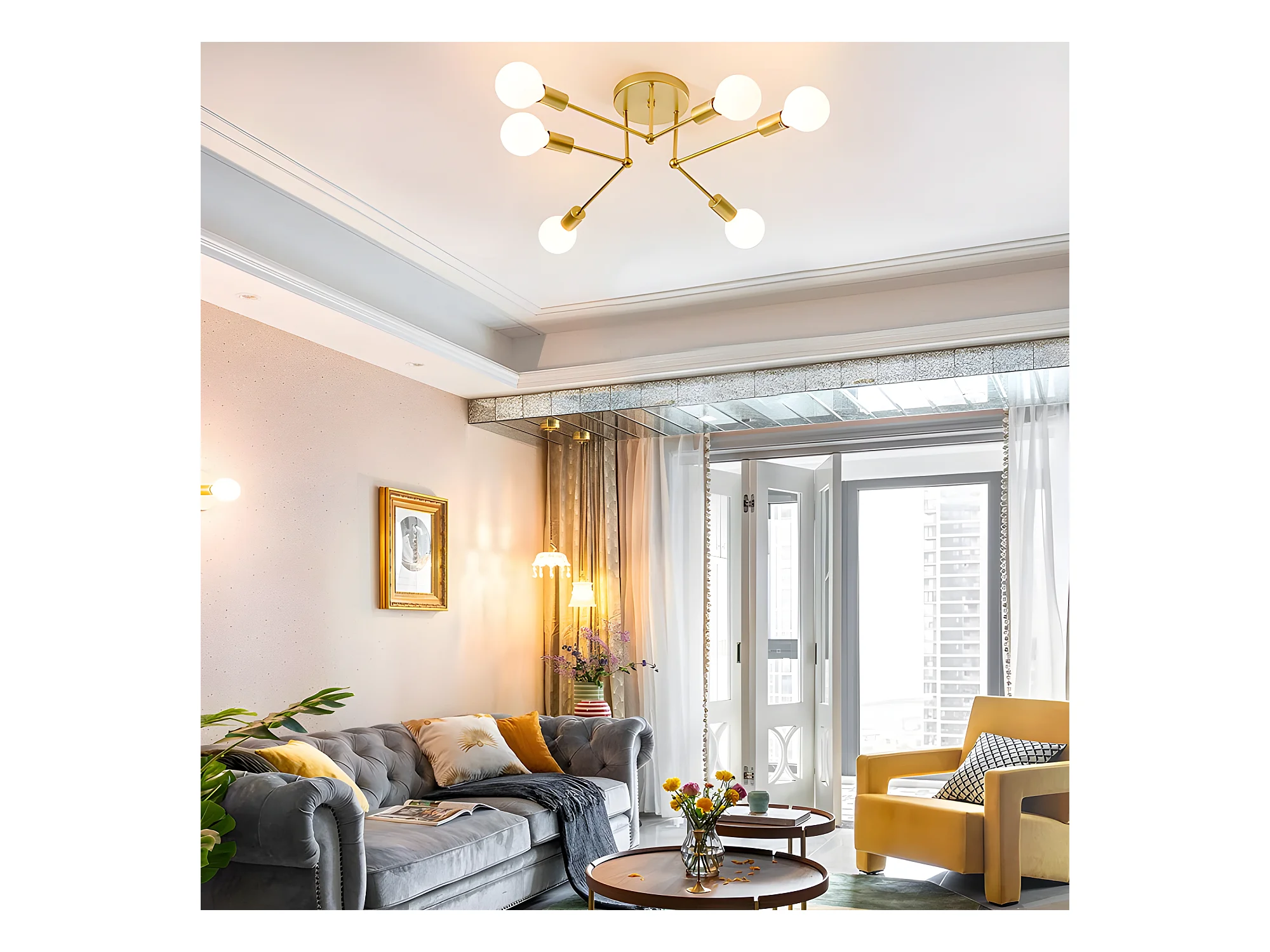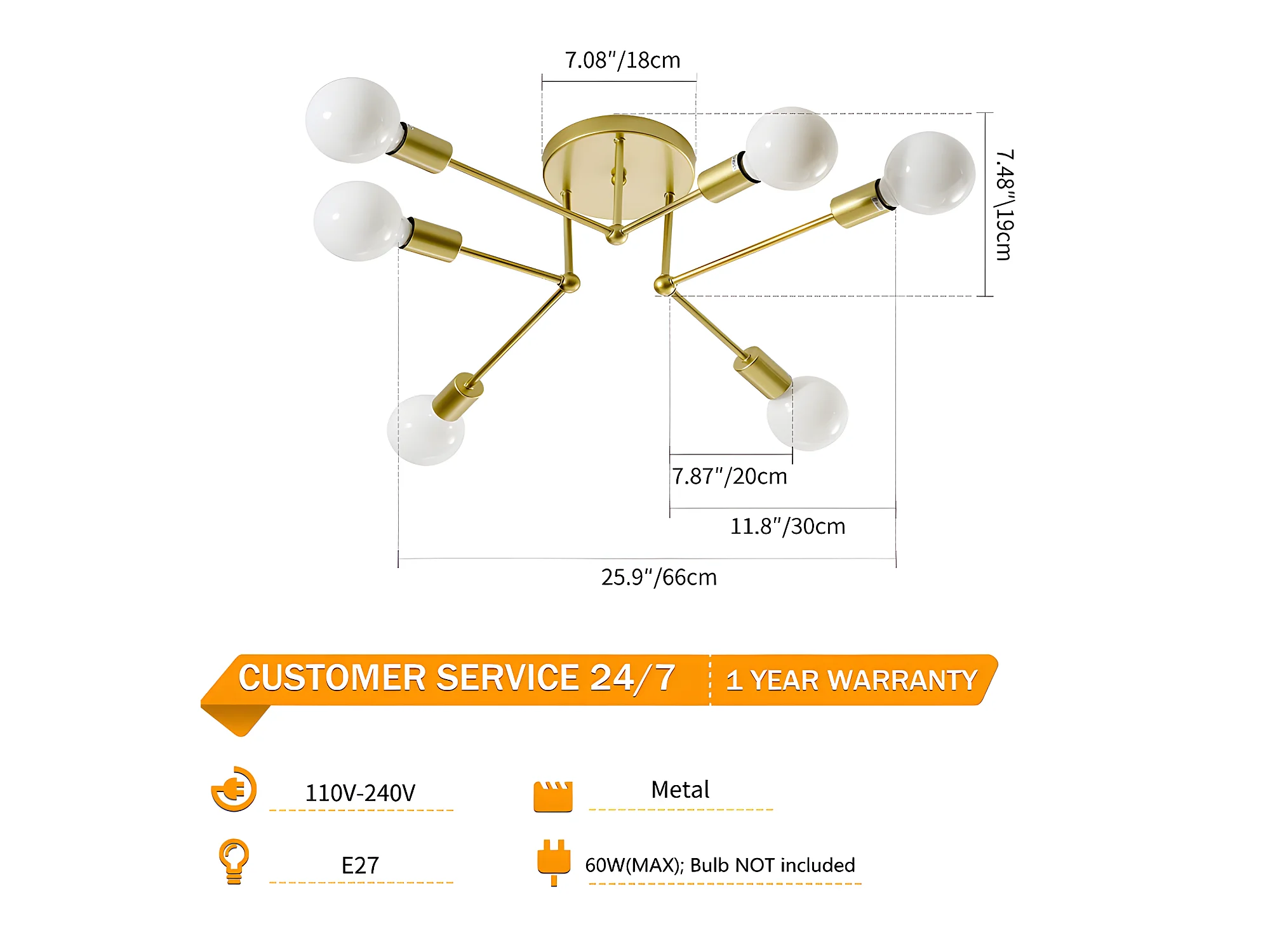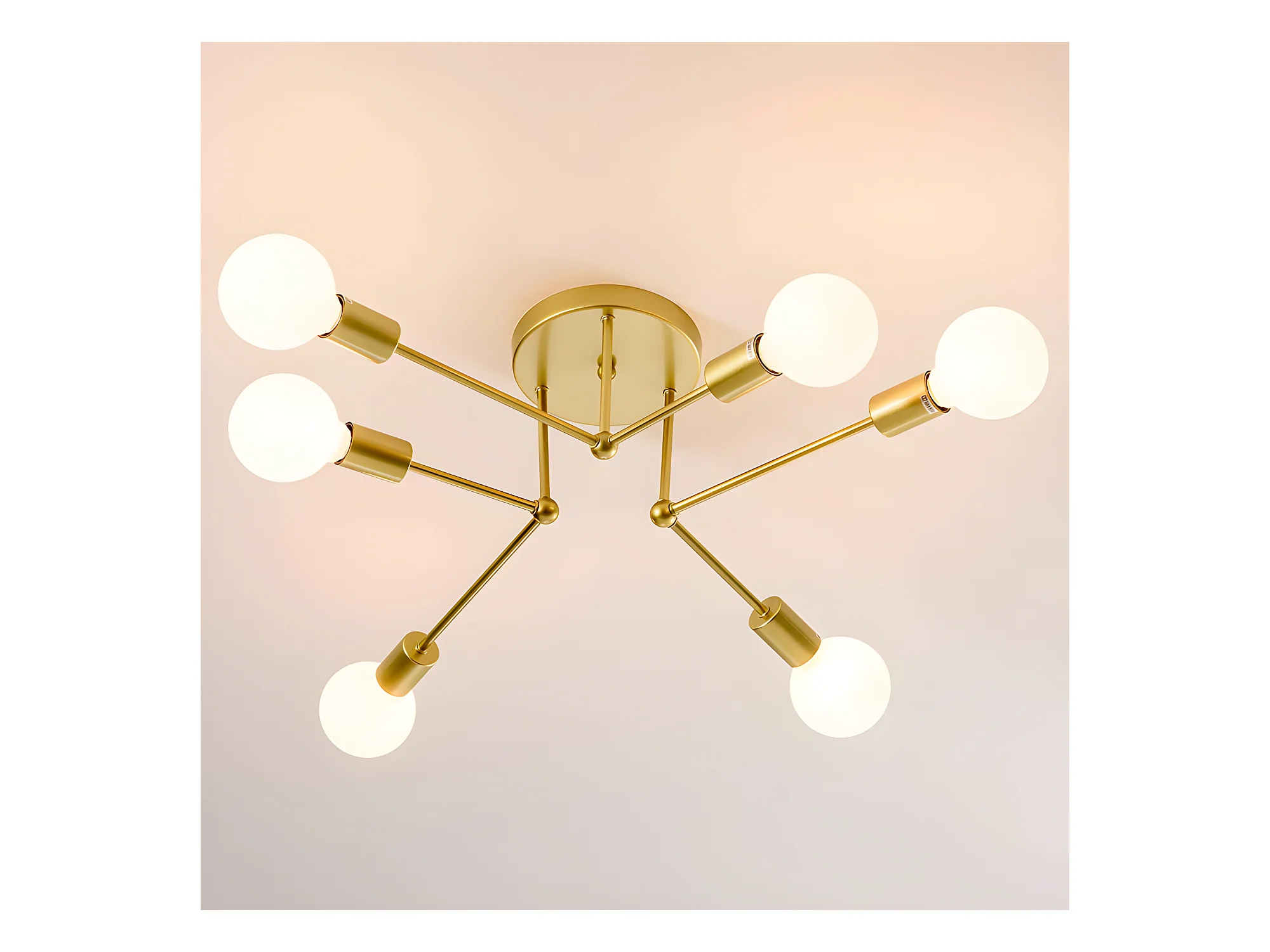 Plafonnier vintage E27 base 6 lampe, or, 70 * 70 * 18cm, sans ampoules