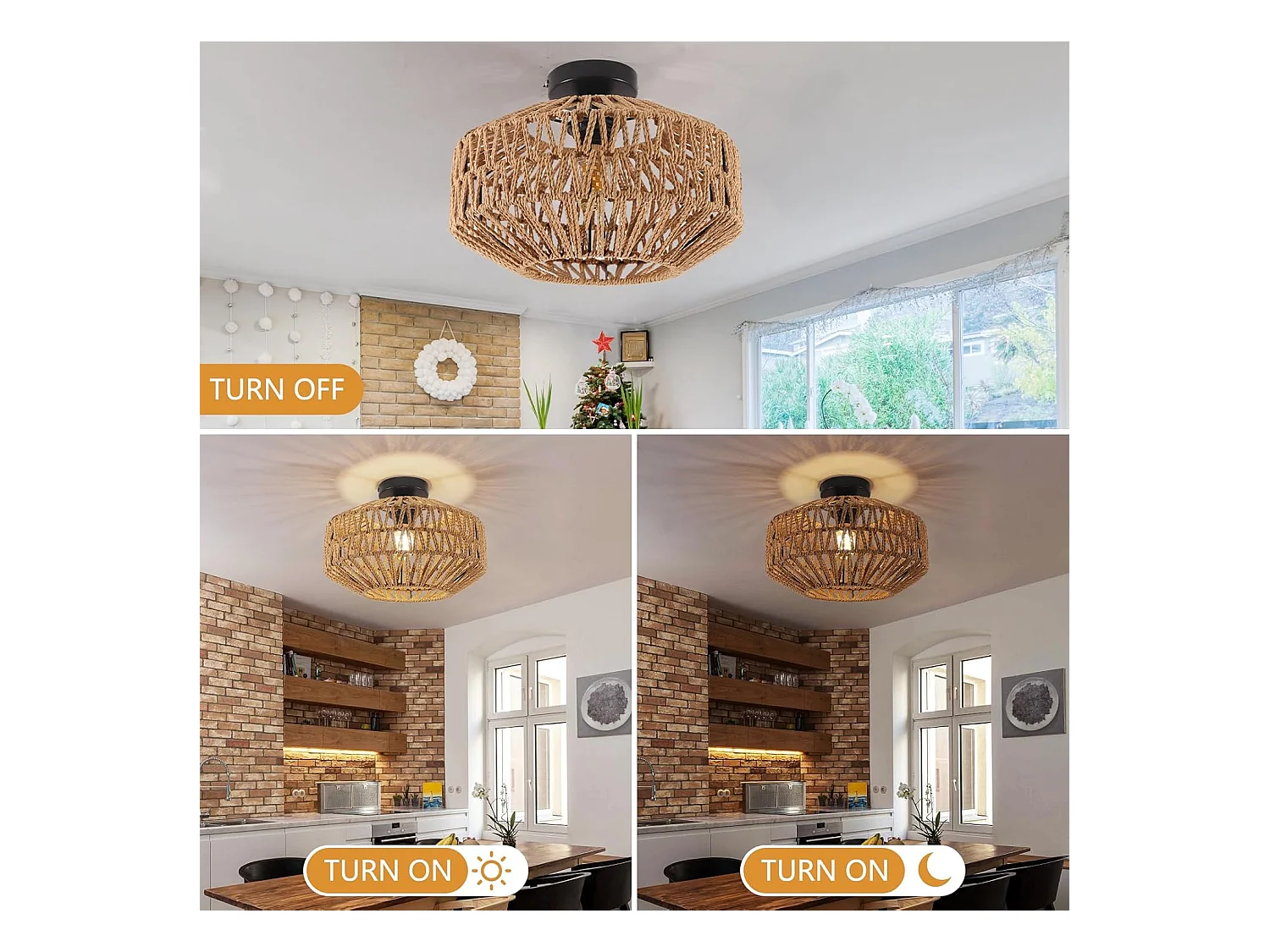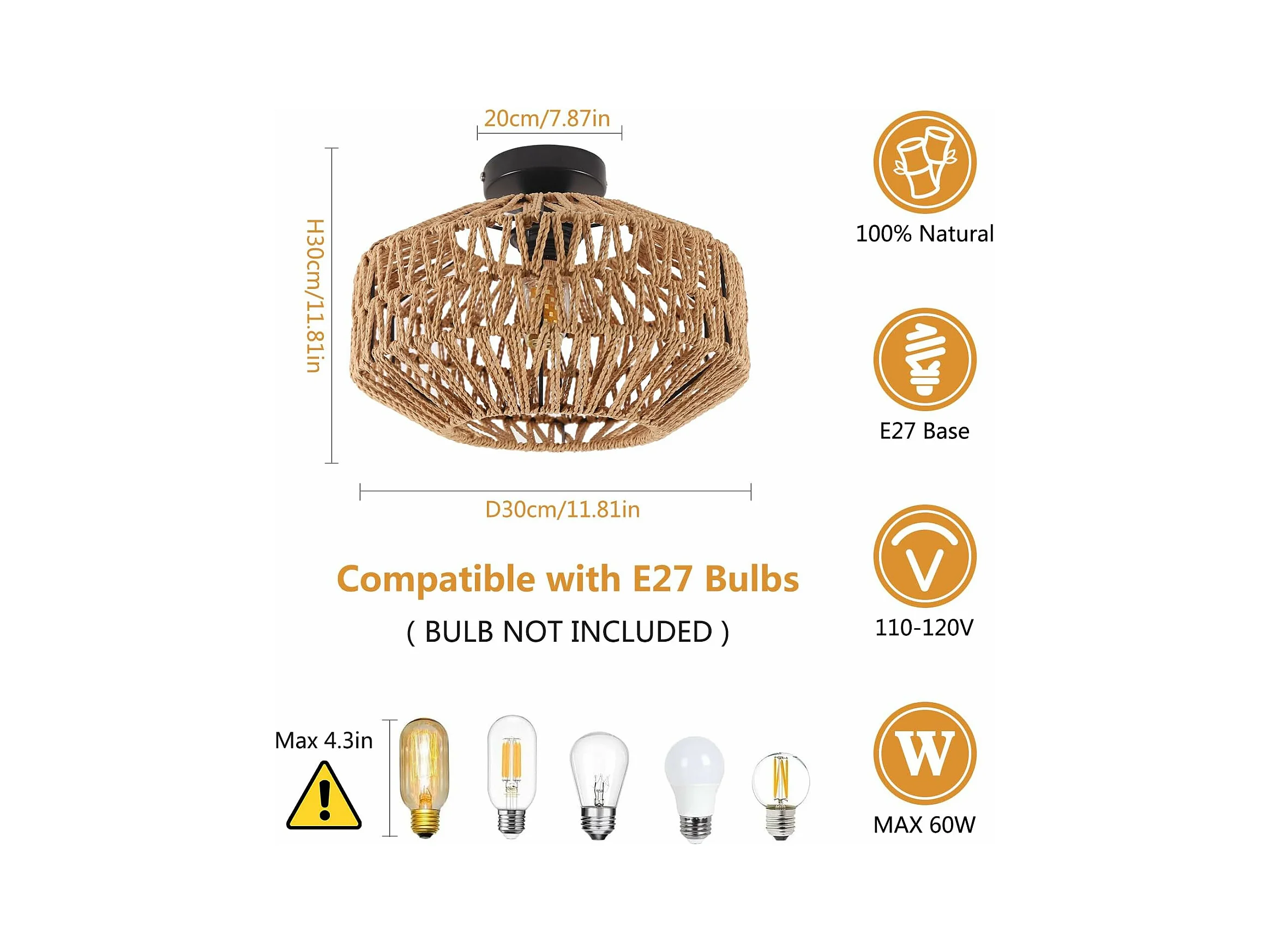 Plafonnier Vintage E27 Max 60W Luminaire Boho en Bambou Tressé Ø30cm Suspension Rotin pour un Éclairage Chaleureux dans Salon Chambre(Ampoule non incluse)