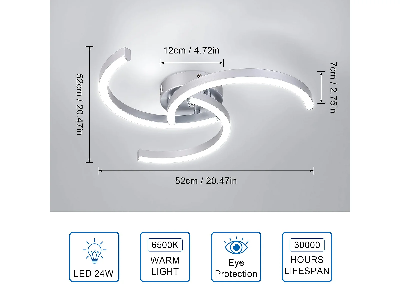 Plafonnier LED en forme de vague, lumière blanche neutre 4000K, LED intégrée 24W 2000 lumens, lustre moderne de salon ou de cuisine (lumière blanche neutre)