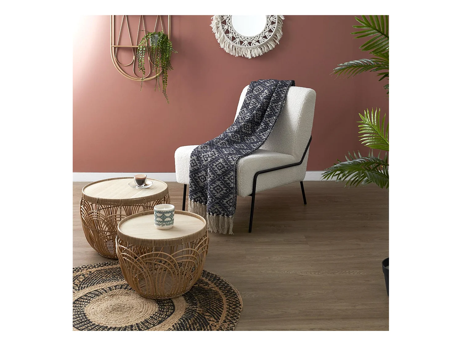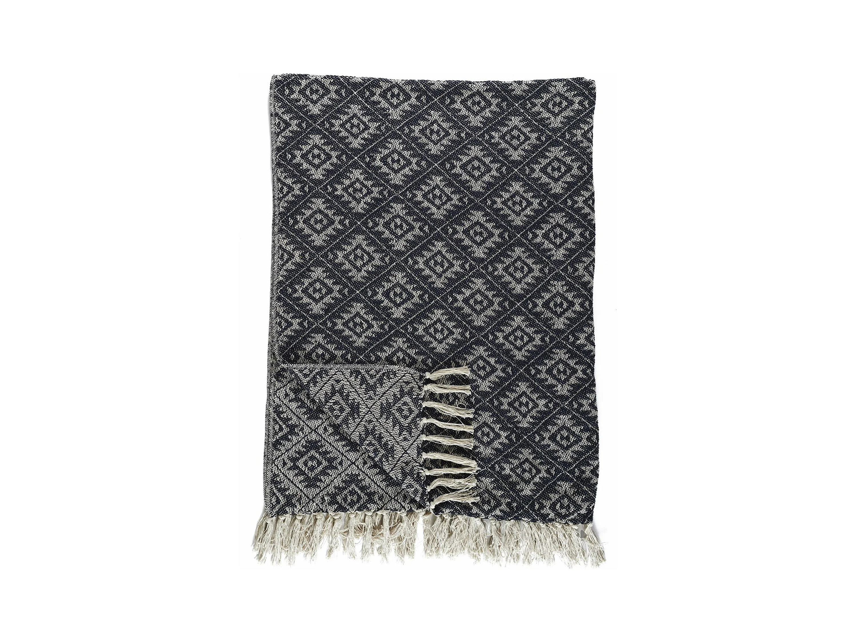 Plaid à franges 120x150cm collection SUN motifs ethnique noir