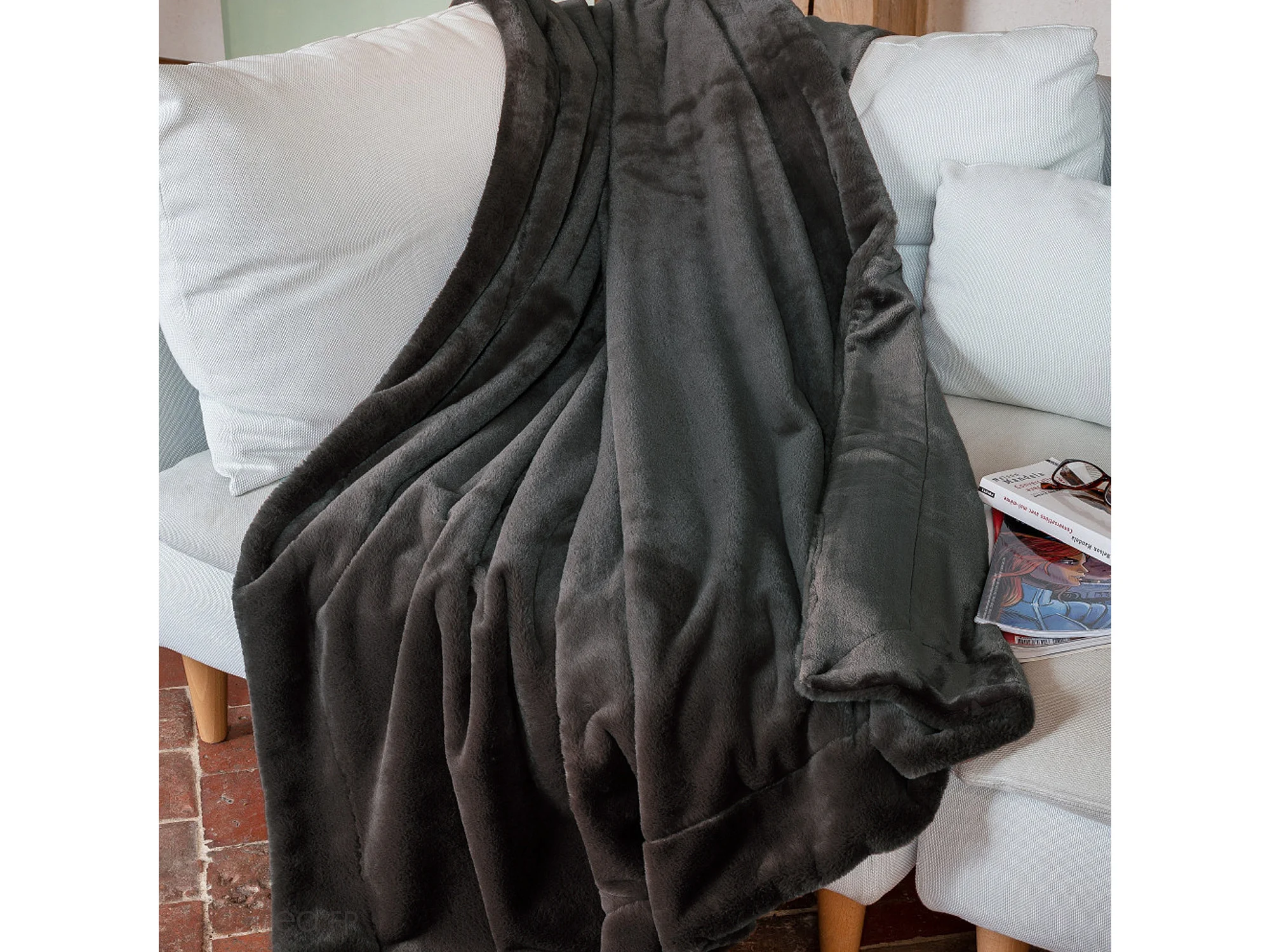 Plaid 150x200 cm en polyester MELLOW gris plomb