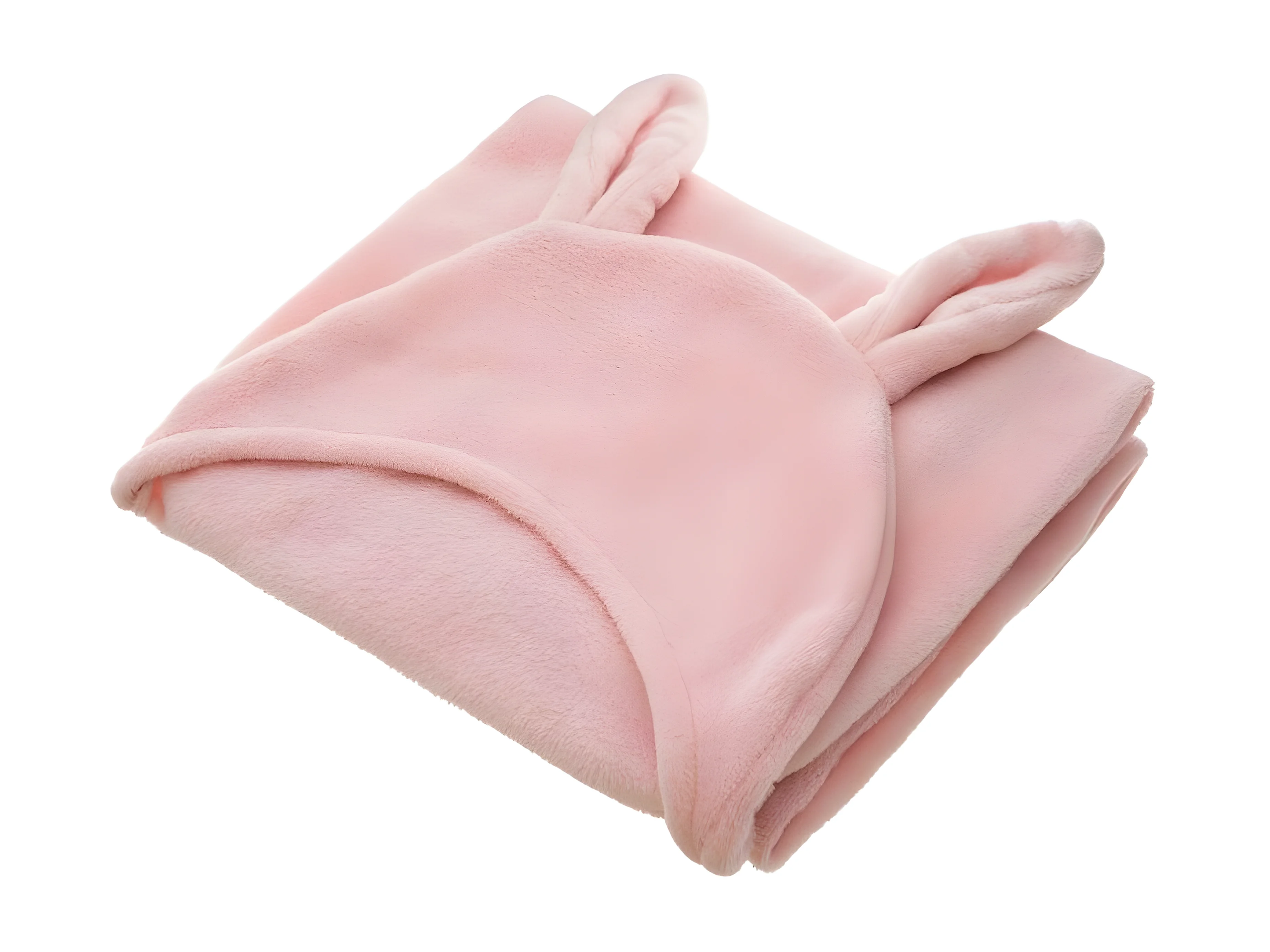 Plaid à Capuche Enfant "Oreilles" 100x100cm Rose