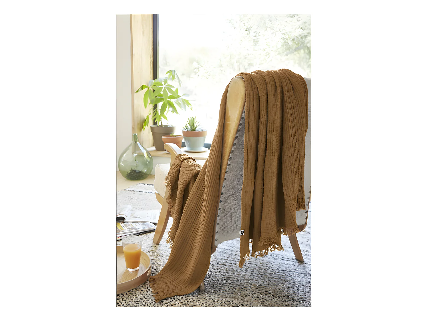Plaid à franges "Gaïa" toutes dimensions "Gaze de Coton"