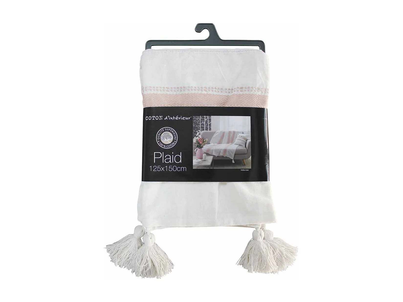 Plaid Déco Uni "Bord Court" 150x200cm Rose