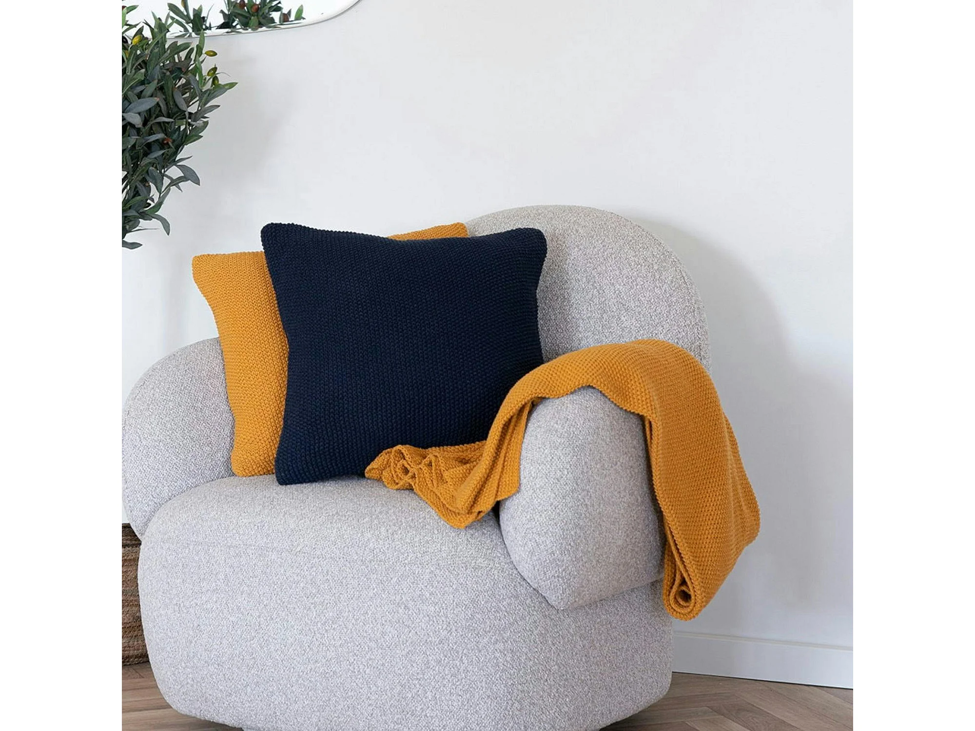 Plaid canapé moutarde - maille de coton recyclé FALLON