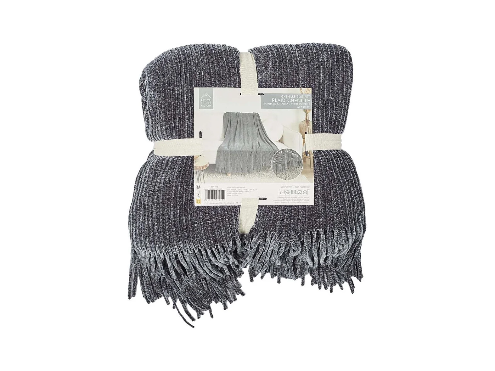 Plaid Chenille Frange Gris 120x150cm Gris
